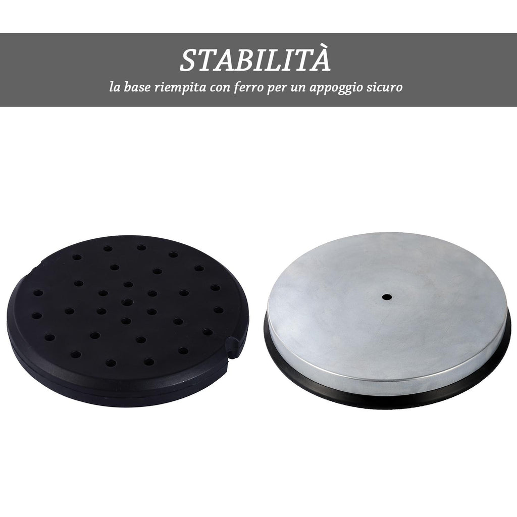 Realizzato in acciaio inox antiruggine e la base è riempita con ferro per la massima stabilità.