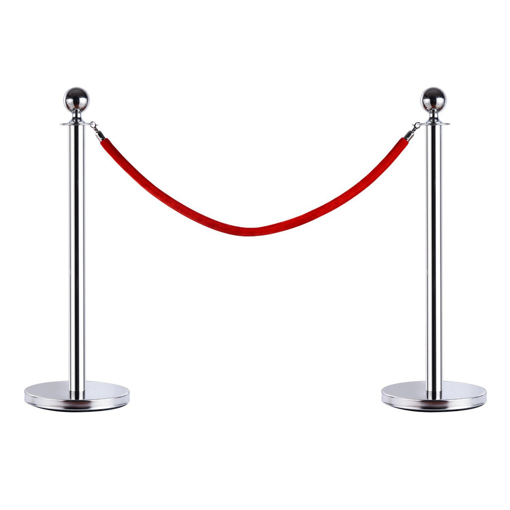 2 Colonnine Separacode Silver con Corda Rossa in Acciaio Inox Ø32x95 cm