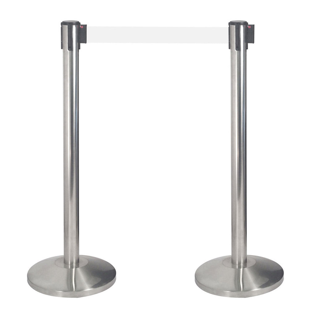 Colonnina Tendinastro 3 metri in Acciaio Inox Spazzolato Ø36x101 cm Nastro Bianco