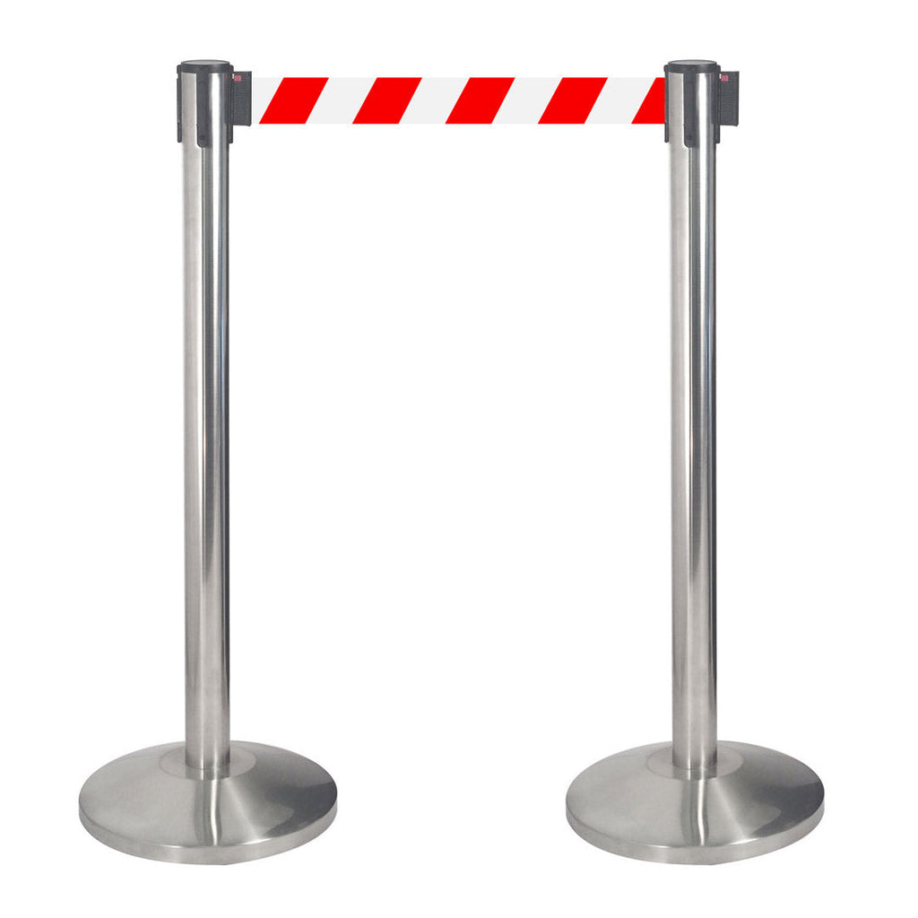 2 Colonnine Tendinastro 3 metri in Acciaio Inox Spazzolato Ø36x101 cm Nastro Bianco/Rosso