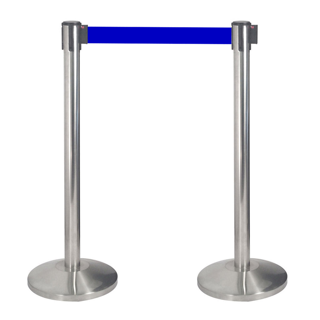 Colonnina Tendinastro 3 metri in Acciaio Inox Spazzolato Ø36x101 cm Nastro Blu