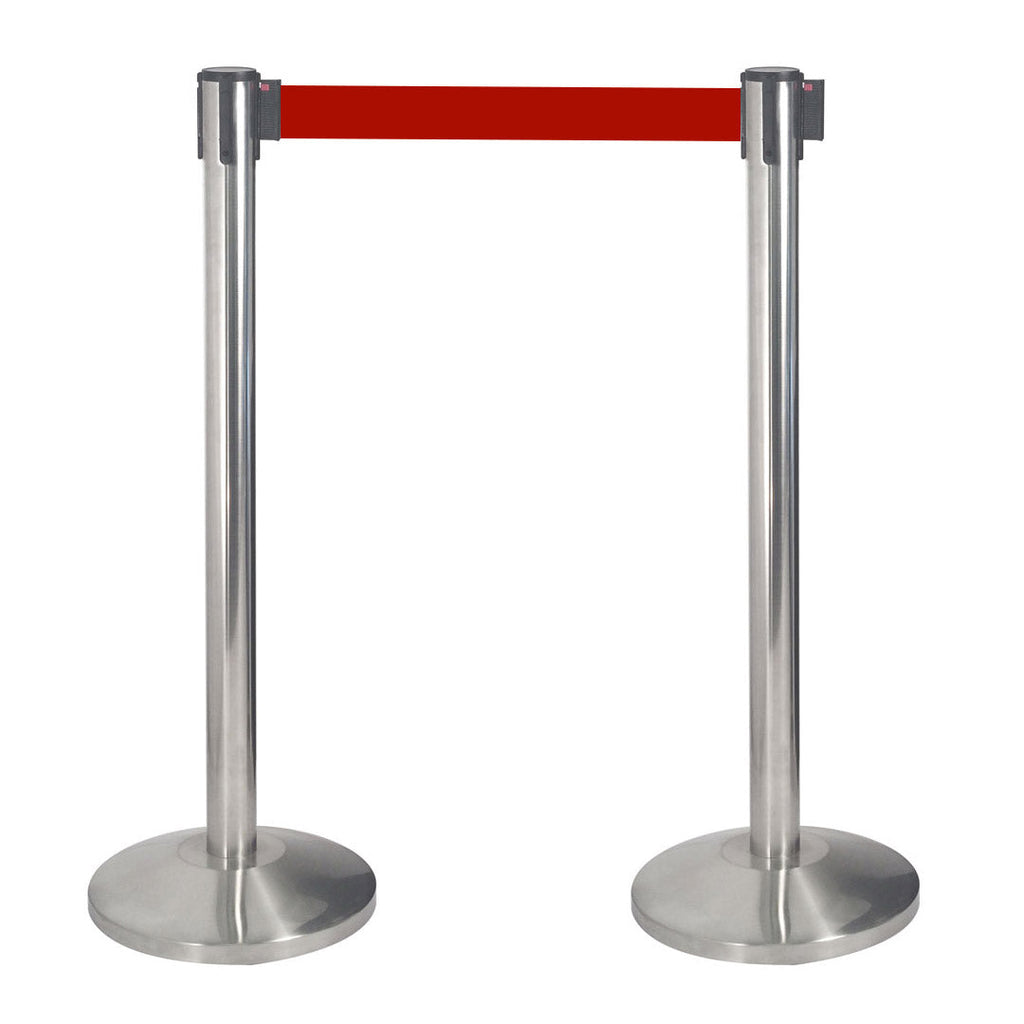2 Colonnine Tendinastro 3 metri in Acciaio Inox Spazzolato Ø36x101 cm Nastro Rosso