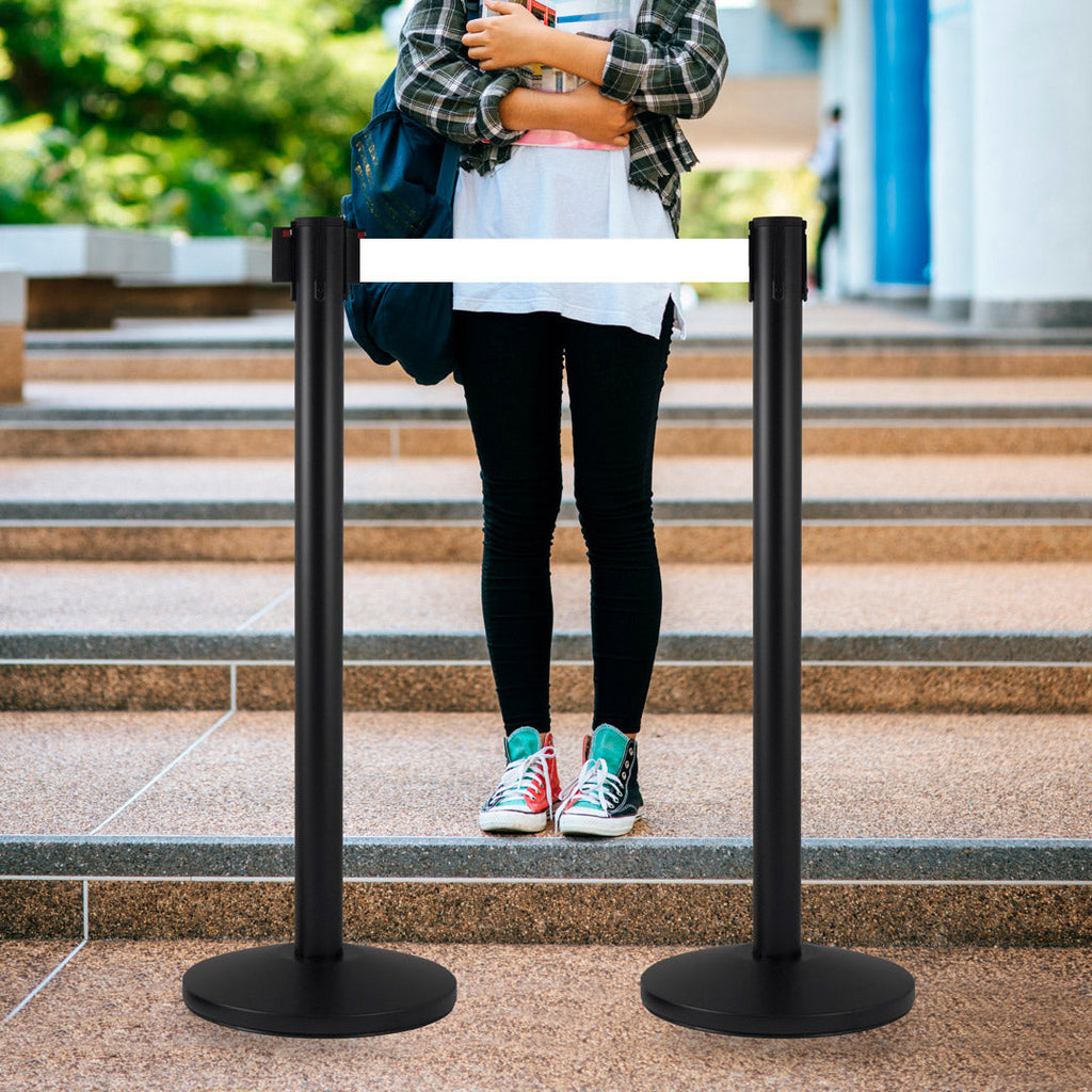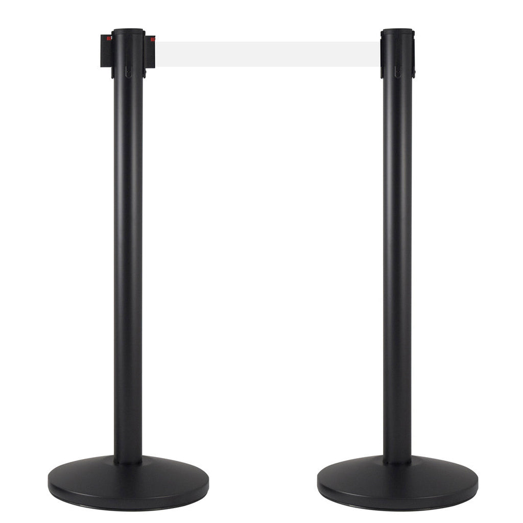 Colonnina Tendinastro 3 metri in Metallo Nero Opaco Ø36x101 cm Nastro Bianco