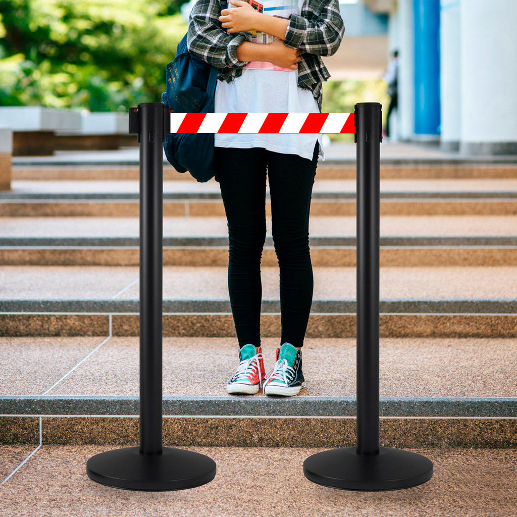 2 Colonnine Tendinastro 3 metri in Metallo Nero Opaco Ø36x101 cm Nastro Bianco/Rosso