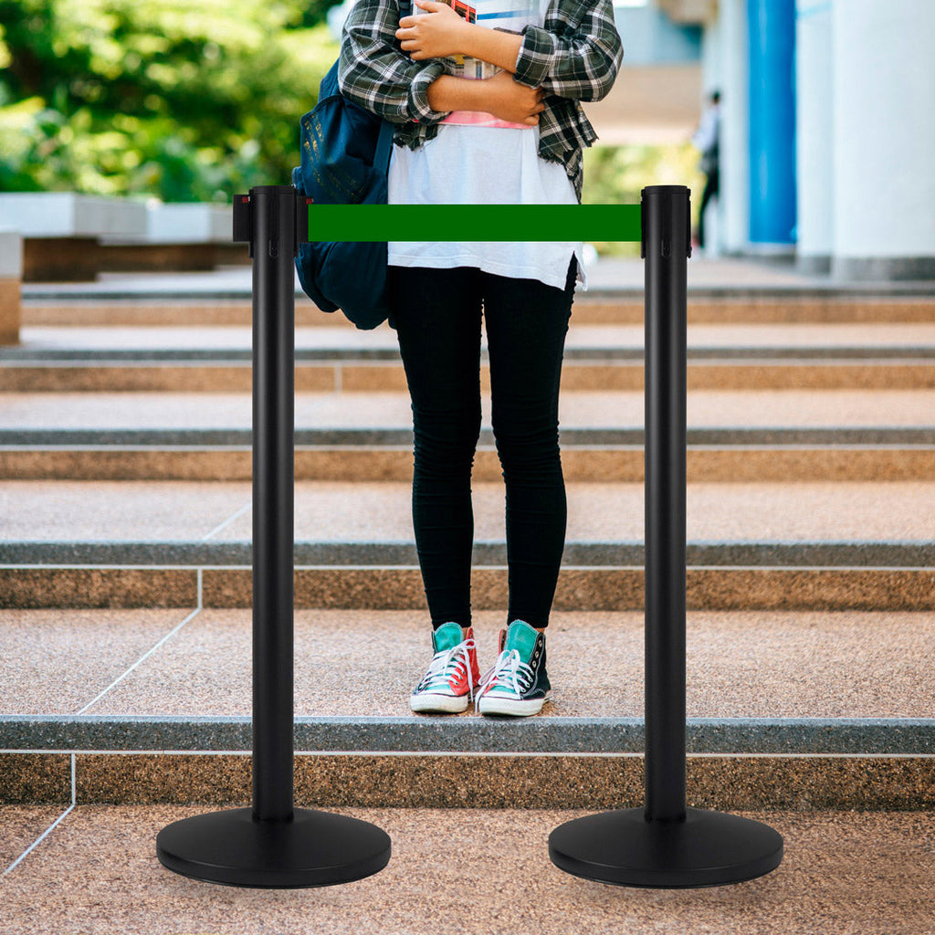 Colonnina Tendinastro 3 metri in Metallo Nero Opaco Ø36x101 cm Nastro Verde