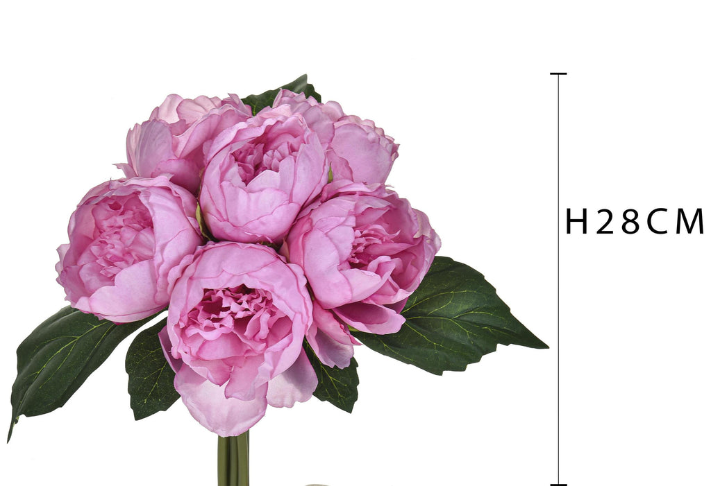 Set 3 Mazzi di Peonie con 6 Fiori Artificiali Altezza 28 cm Rosa