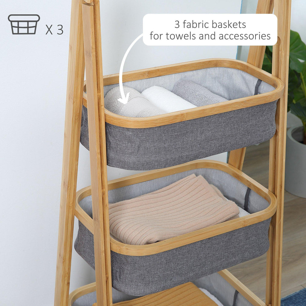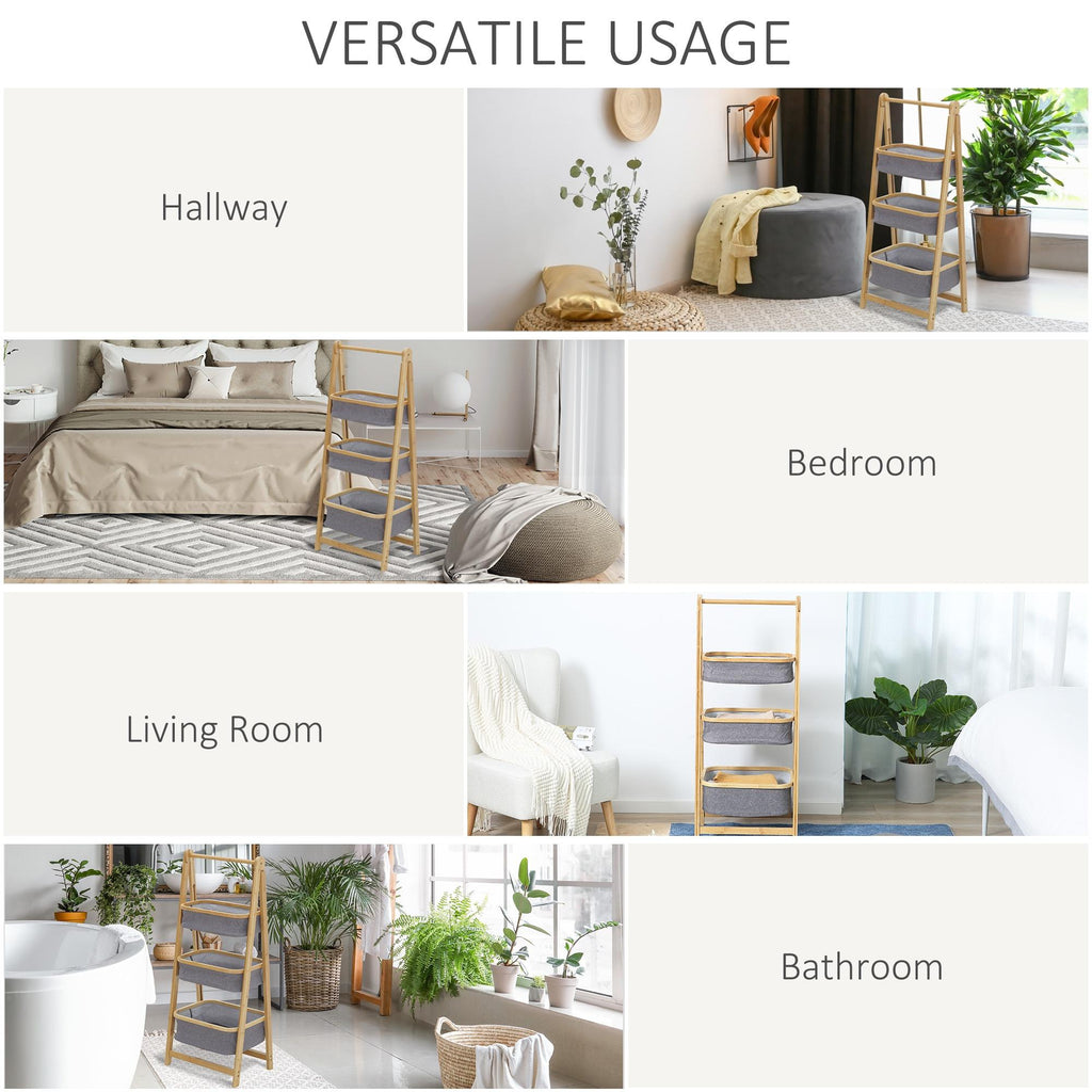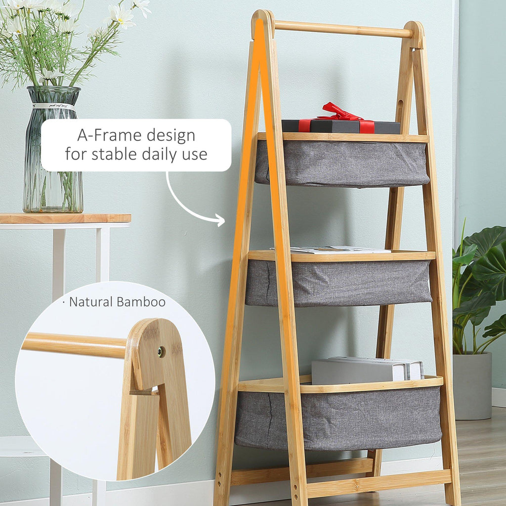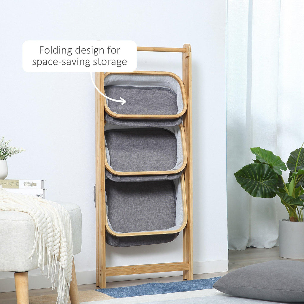 3 Cestini in Tessuto con Supporto Pieghevole 45x31,5x108 cm in Bambù Grigio