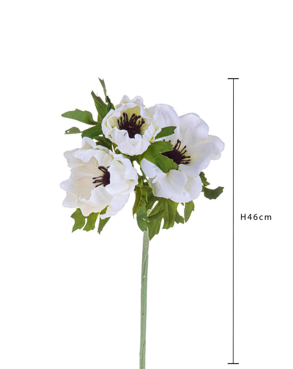 Set 8 Fiori Artificiali di Anemone Composta da 3 Fiori Altezza 46 cm Bianco