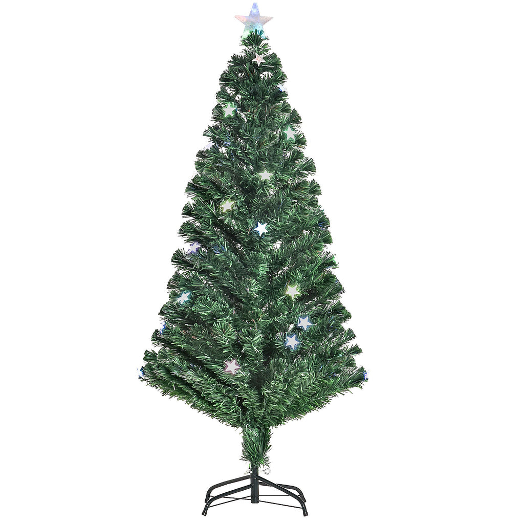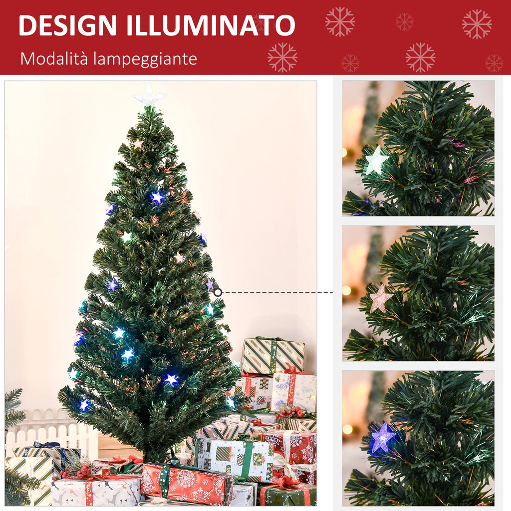 Albero di Natale Artificiale 150 cm 180 Rami 36 Luci LED e Fibre Ottiche Colorate Verde