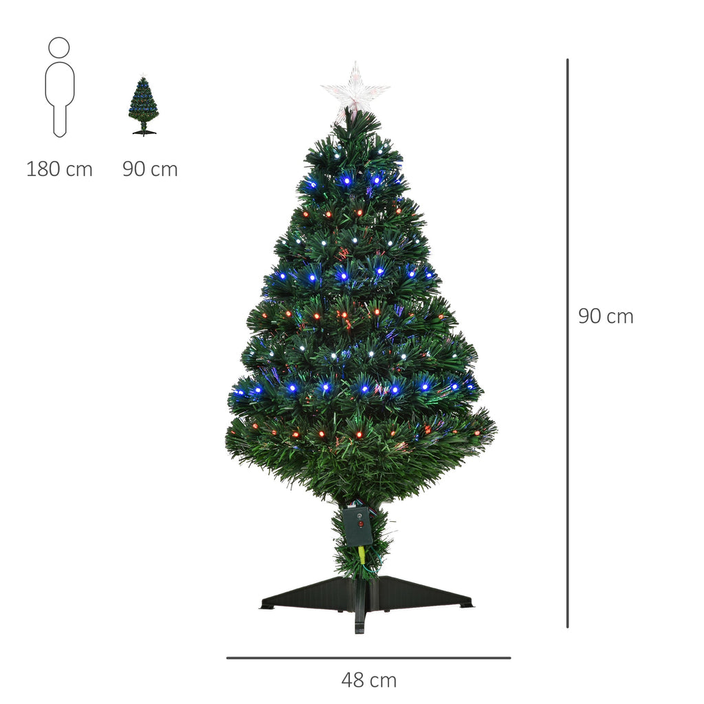 Albero di Natale Artificiale 90 cm 90 Rami con Luci LED e Fibre Ottiche Colorate Verde