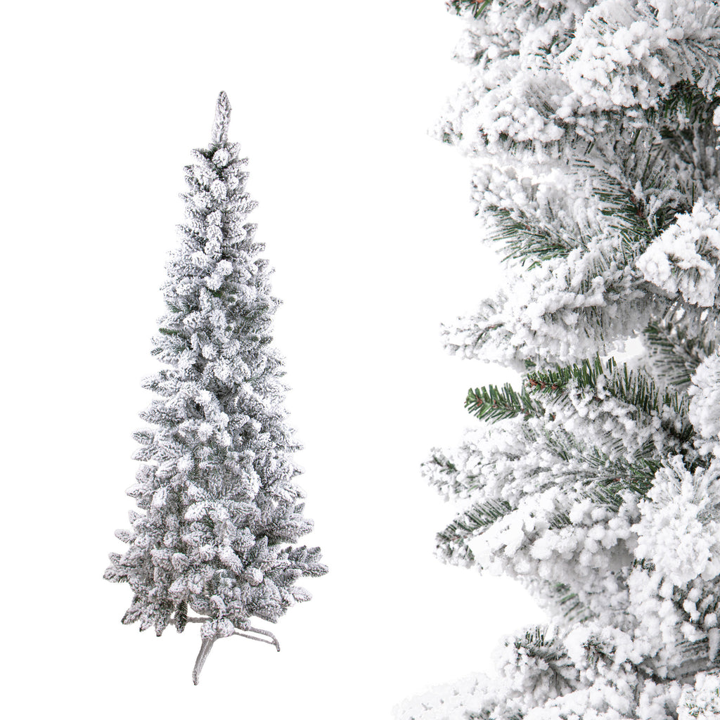 Albero di Natale Artificiale H180 cm Abete Douglas Slim con Neve 465 Tips Verde