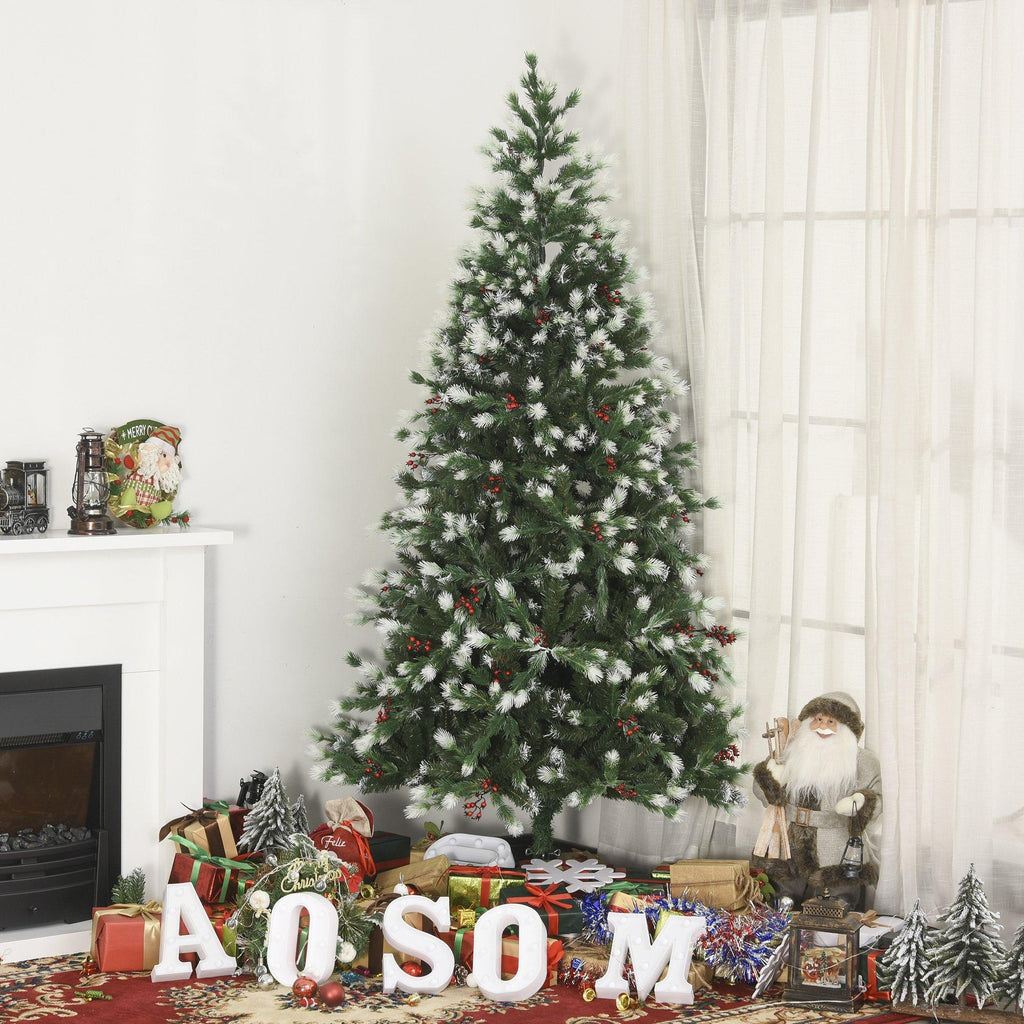 Albero di Natale Artificiale Innevato 180 cm 836 Rami con Bacche Rosse Pino Verde