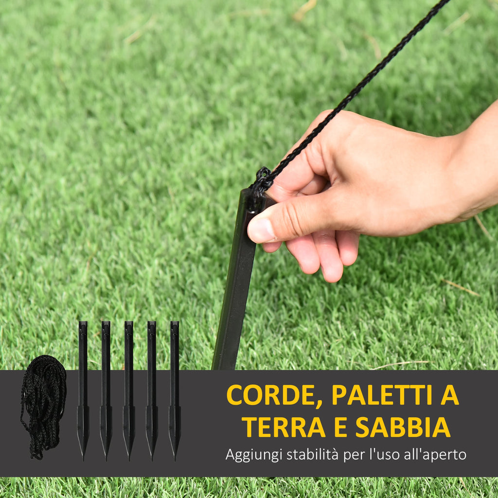 - Viene fornito con corde e chiodi a terra che forniscono una maggiore stabilità