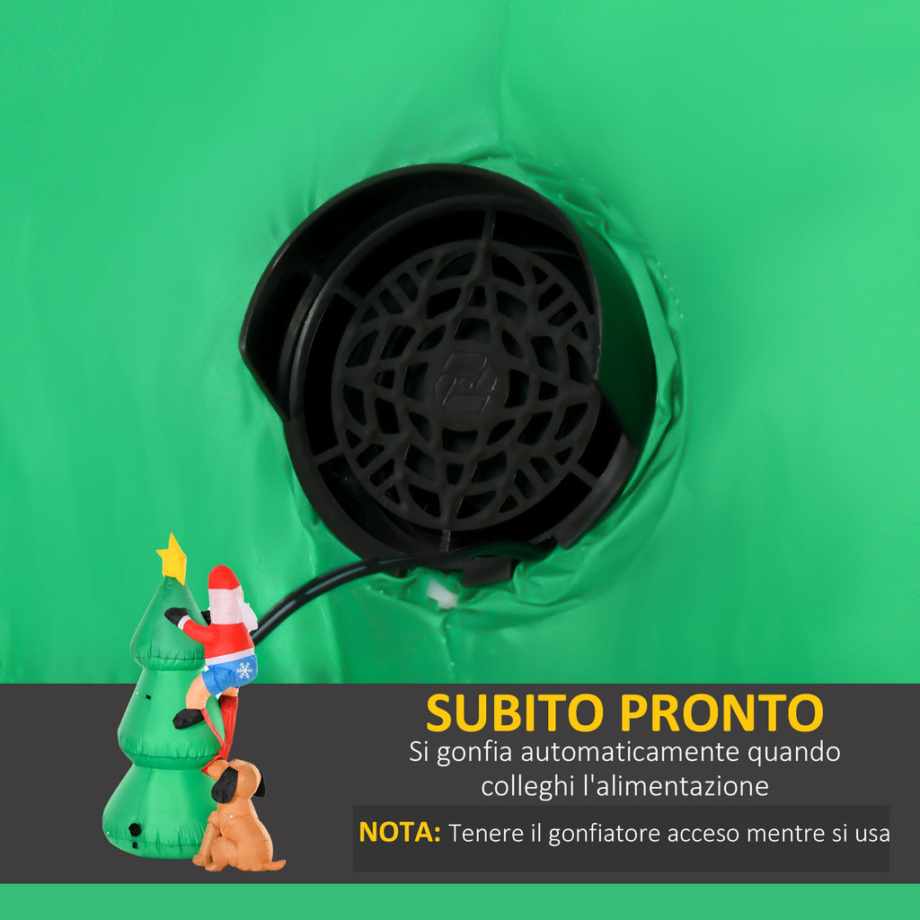 Albero di Natale Gonfiabile 180 cm con Babbo Natale Cagnolino e Luci LED
