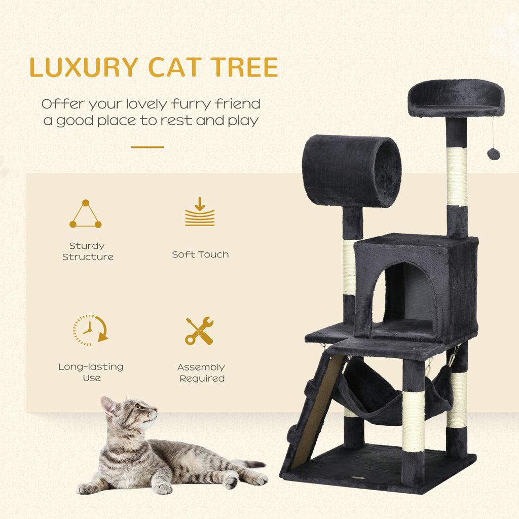 Albero per Gatti con Tiragraffi 48x48x125 cm Casetta Amaca Letto e Tunnel in Truciolato Peluche e Sisal Grigio