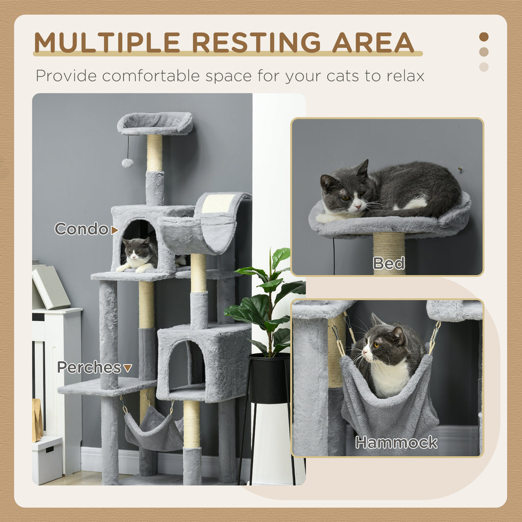 - TANTI LUOGHI COMODI: Questa torre per gatti è dotata di un'accogliente amaca, di 2 spaziose casette per gatti, di un lettino superiore e di molteplici posatoi, tutti rivestiti in morbido tessuto felpato per regalare ai pelosi un maggiore comfort