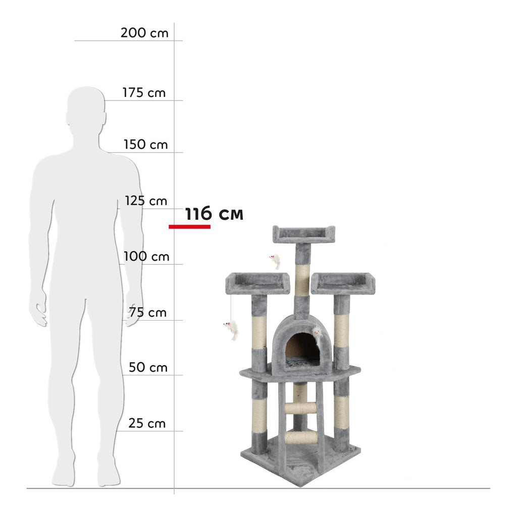 Albero Tiragraffi con Cuccia per Gatti H116 cm Rizzetti Silvestro Grigio
