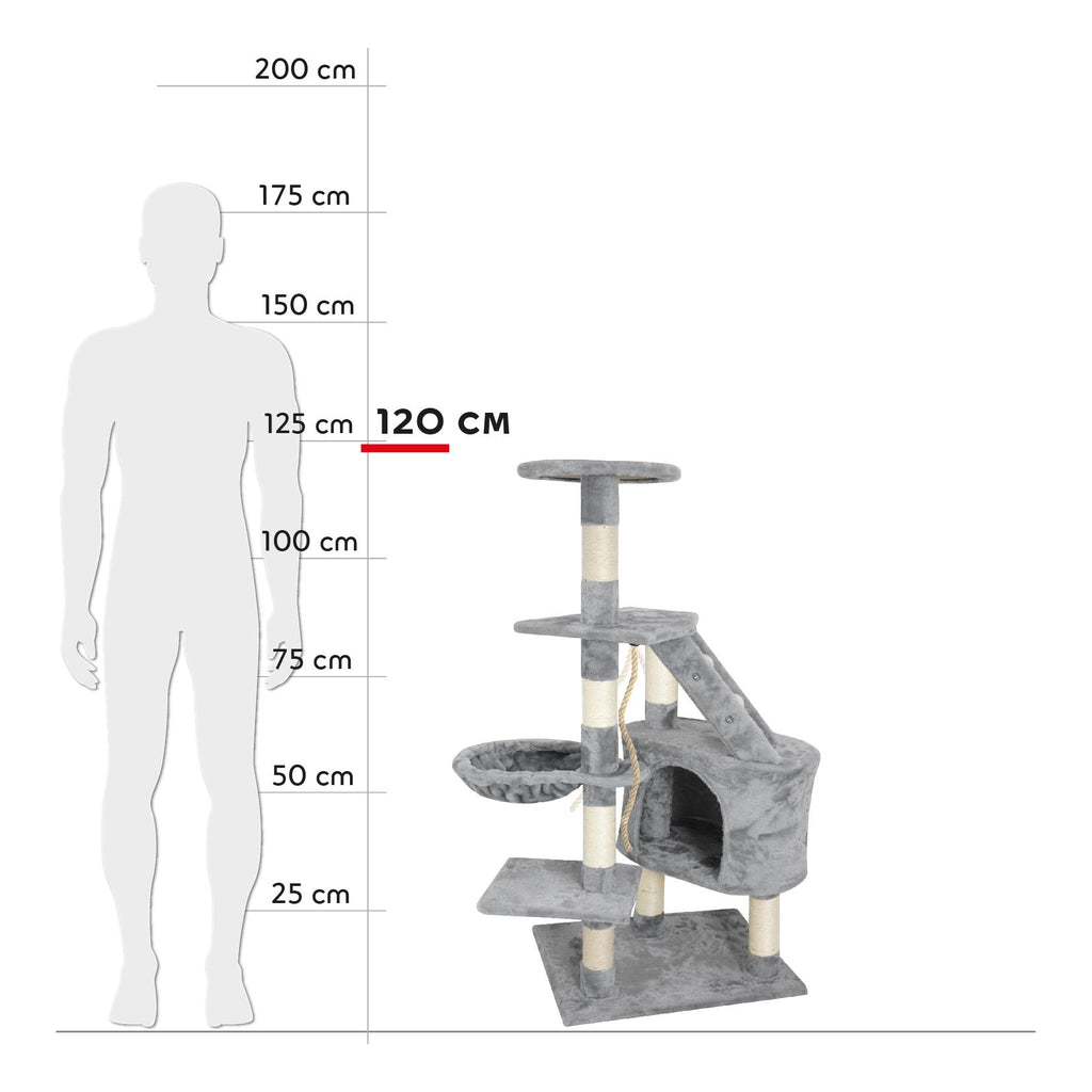 Albero Tiragraffi con Cuccia per Gatti H120 cm in Legno Sisal Naturale Rizzetti Grigio