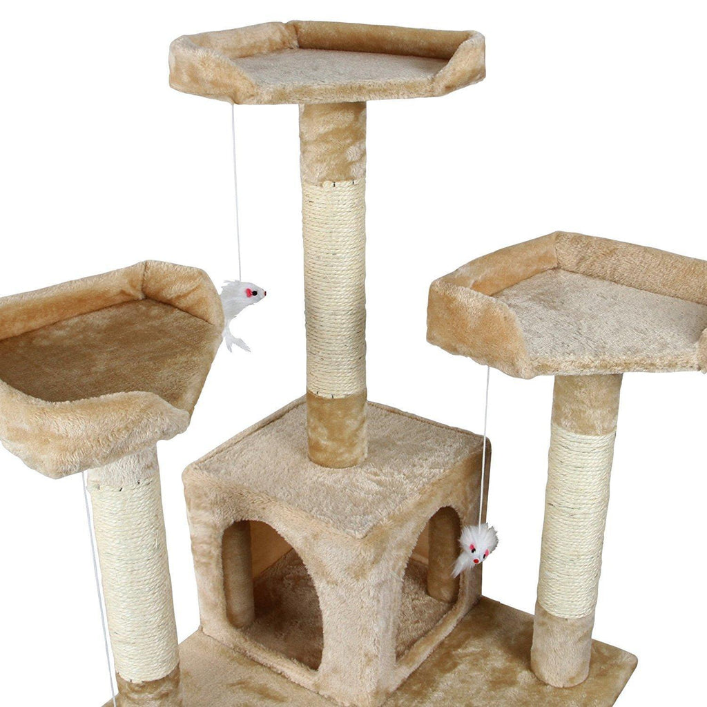 Albero Tiragraffi con Cuccia per Gatti H170 cm in Legno Sisal Naturale Rizzetti Beige