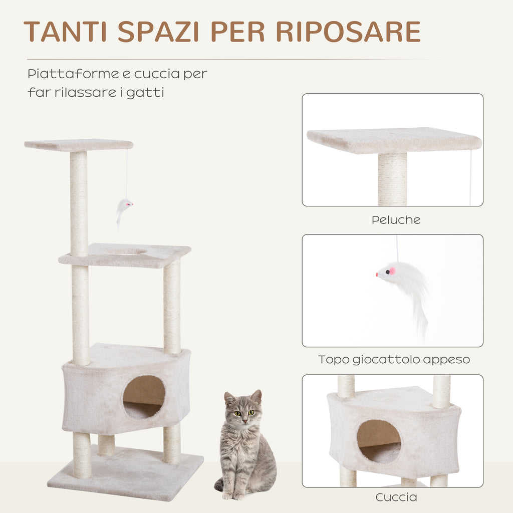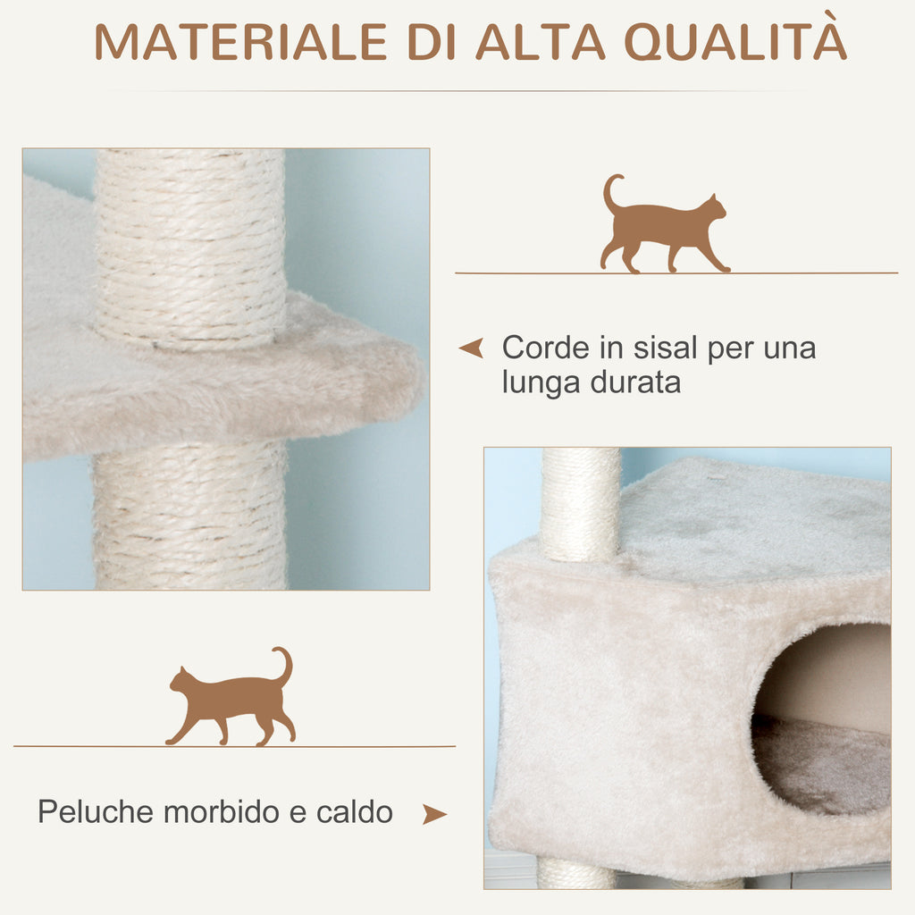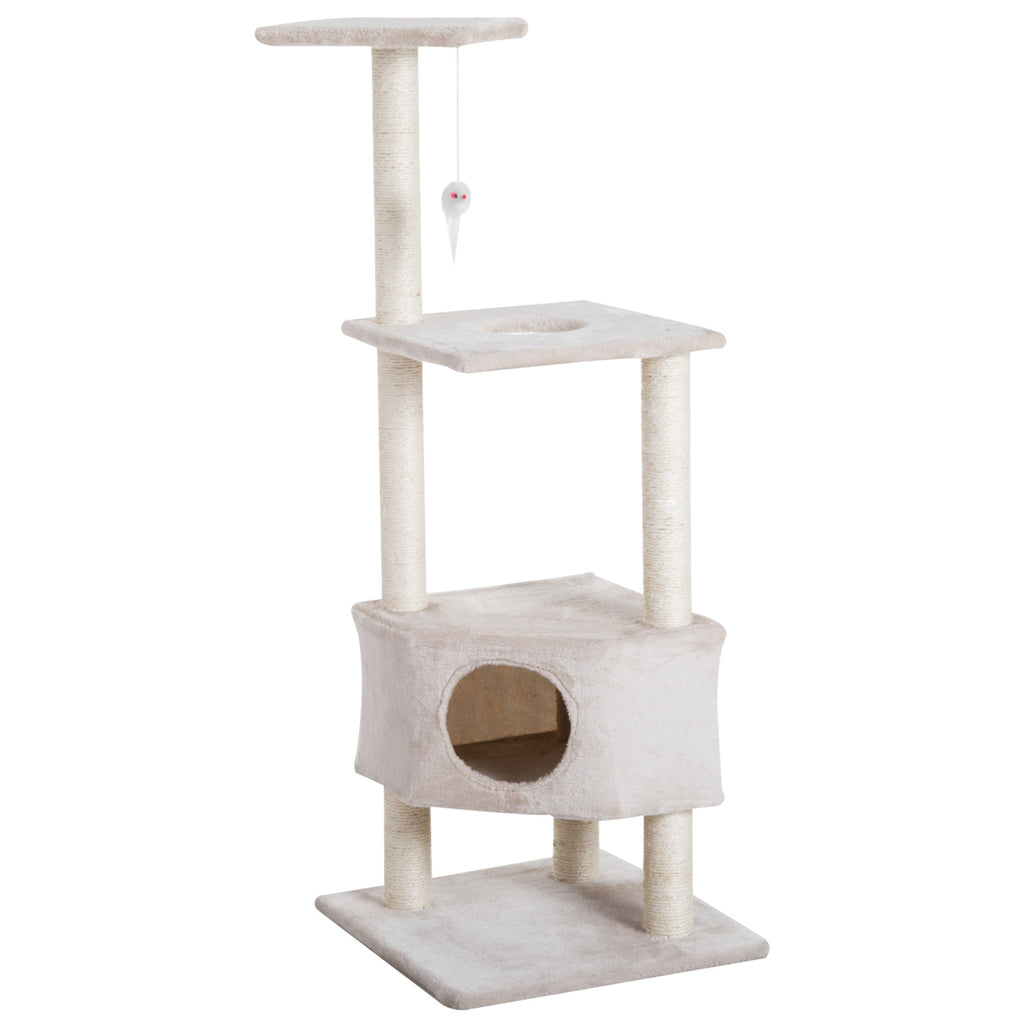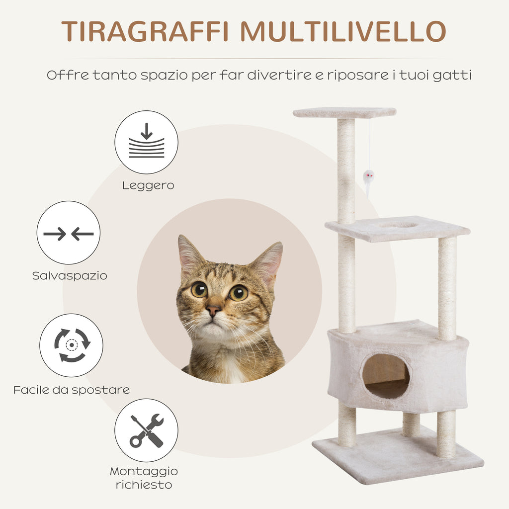 Albero Tiragraffi per Gatti 3 Livelli Crema 49x48x130 cm