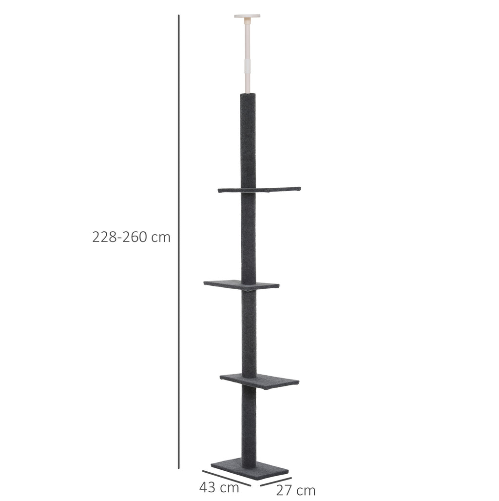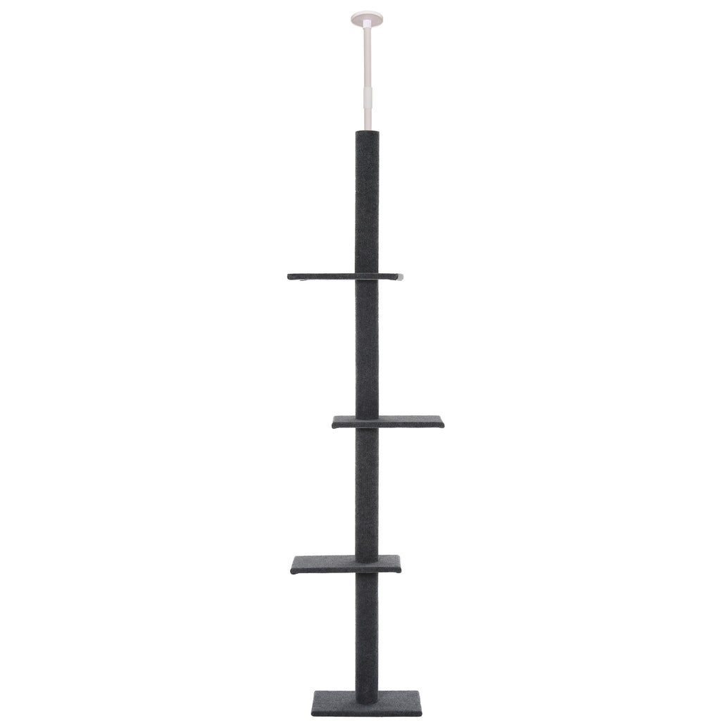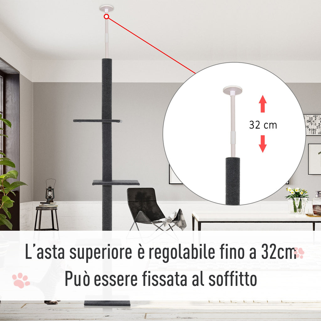 - TIRAGRAFFI E CENTRO ATTIVITÀ: Questo albero tiragraffi per gatti regolabile in altezza dal pavimento al soffitto può essere fissato al soffitto grazie all'asta regolabile in dotazione. È dotato di 4 ripiani per le attività, nonché di di aree tiragraffi e offre così la possibilità di arrampicarsi, giocare e riposare.