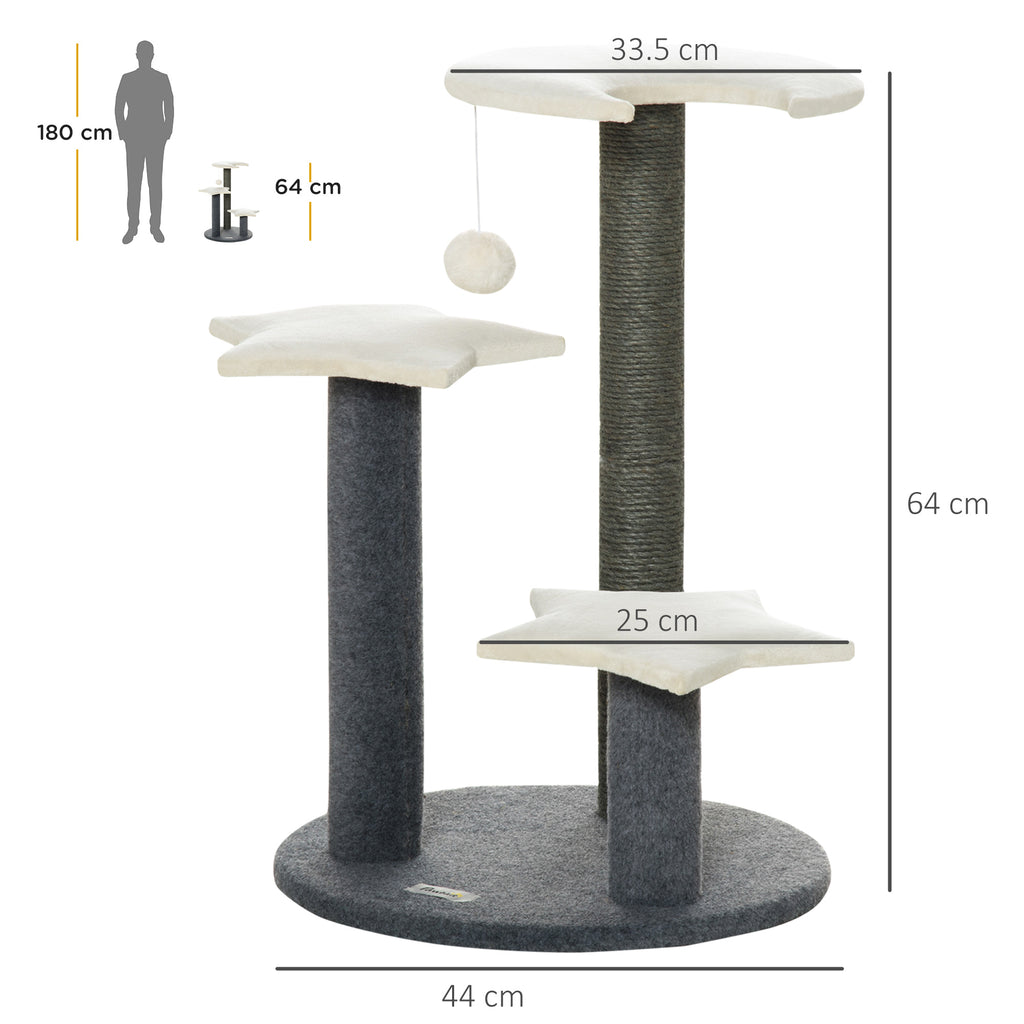 Il nostro mini albero tiragraffi soddisfa le esigenze del tuo gatto e aggiunge un tocco decorativo ai tuoi spazi. Realizzato con 3 piattaforme a forma di luna e stelle, l'albero per gatti è rivestito in morbido peluche che lo rende confortevole. Il palo tiragraffi avvolto in corda sisal soddisfa la naturale voglia dei felini di affilarsi gli artigli, così non penseranno più di graffiare i tuoi mobili. Con questo tiragraffi piccolo farai felici i tuoi gatti!