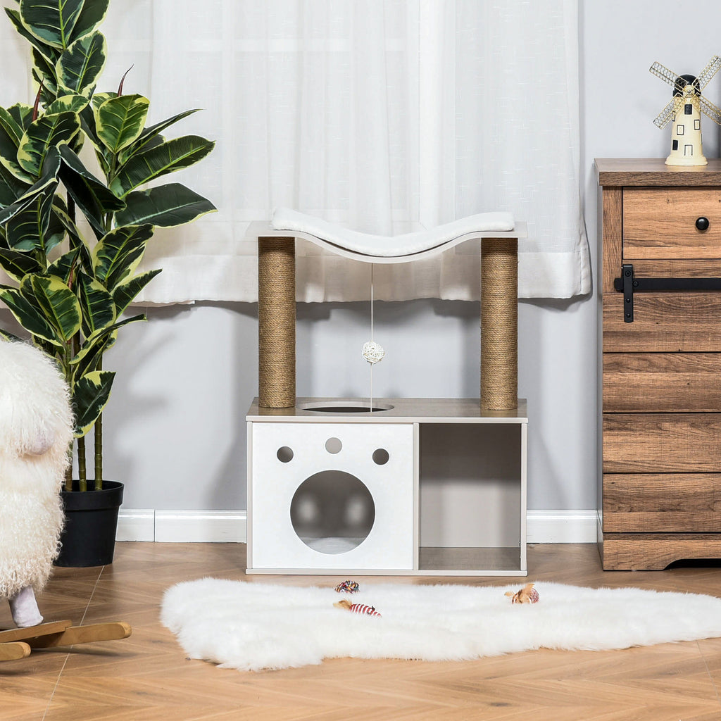 - PER IL TUO GATTO: Questo tiragraffi con cuccia, 2 pali, piattaforma superiore e pallina per giocare è il luogo perfetto per rilassarsi e divertirsi