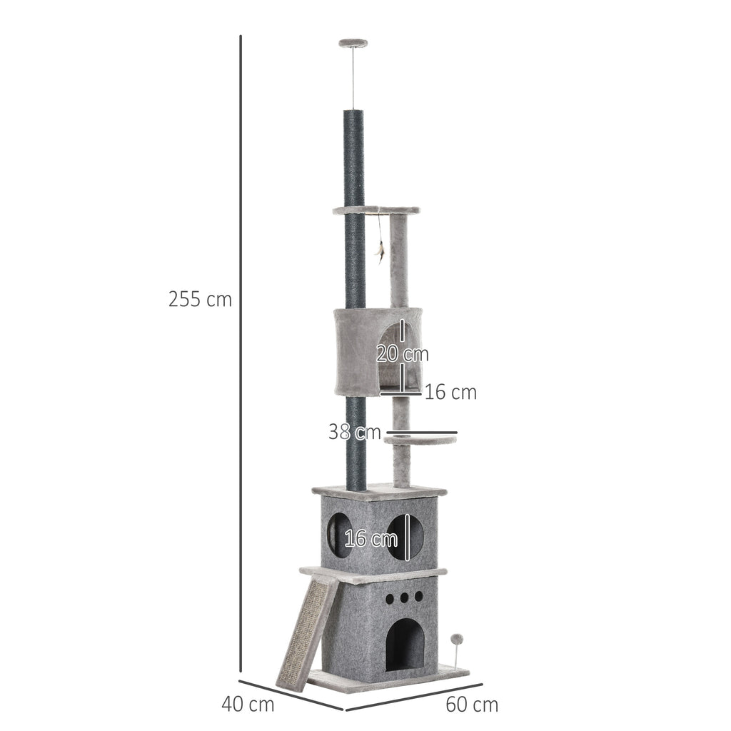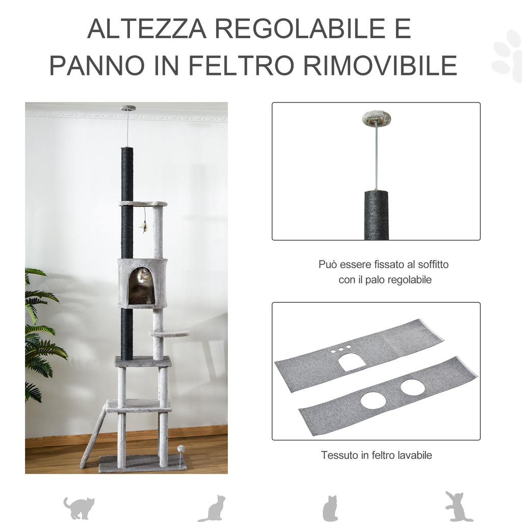 - ALBERO MULTI-ATTIVITÀ: Questo albero tiragraffi per gatti ha un sistema di fissaggio al soffitto regolabile. È dotato di diverse piattaforme con dimensioni varie, oltre a pali tiragraffi, casette e giochi pendenti. Il posto perfetto per far divertire e riposare i tuoi gatti