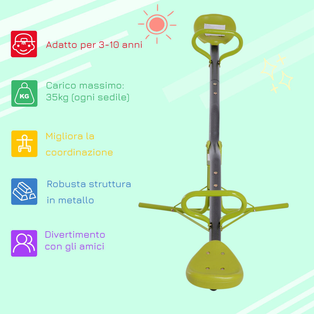 Altalena Basculante e Rotante da Giardino per Bambini in Metallo Verde e Grigio