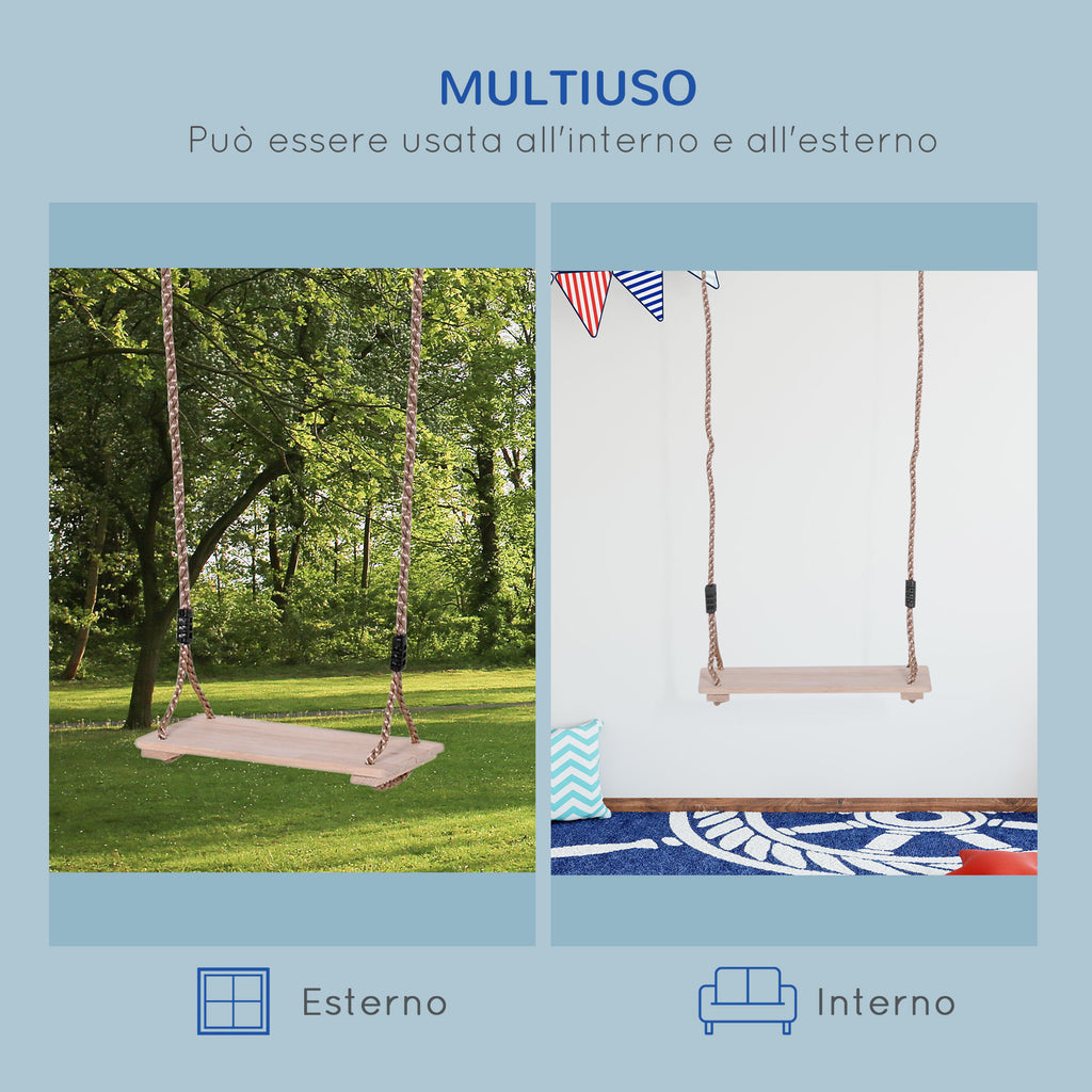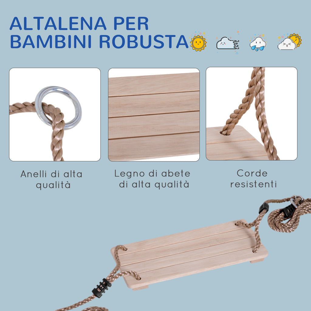 Altalena da Giardino per Bambini con Corda in Canapa Regolabile e Legno