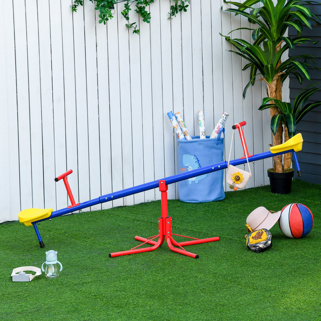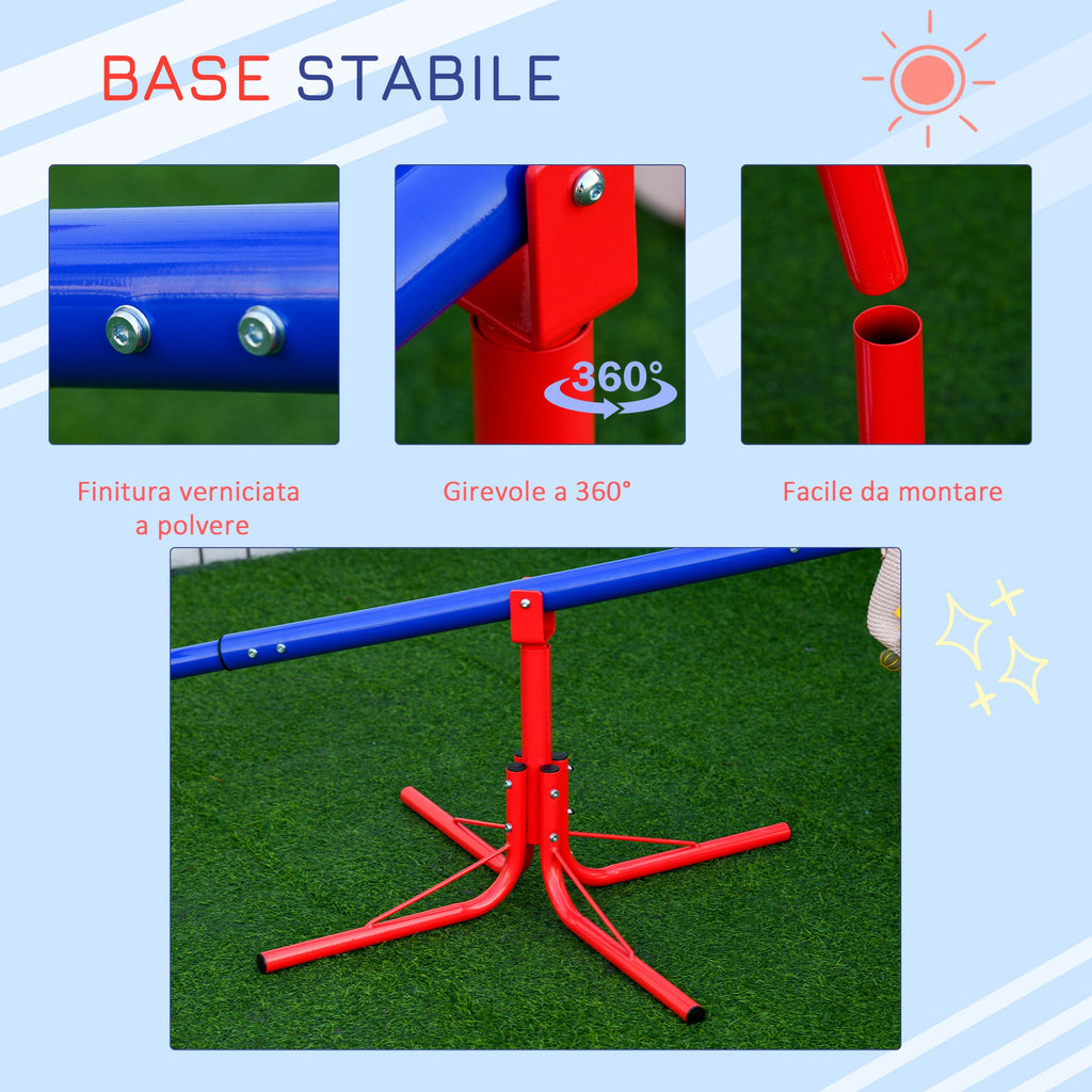 L'altalena per bambini a bilico di offre un doppio divertimento per le giornate all'aperto. Questa altalena unisce il tradizionale movimento basculante a un sistema girevole a 360°, per divertirsi come sulle giostre. Questa altalena da giardino è realizzata con una solida struttura in metallo rivestita a polvere per durare a lungo. Le sedute sono dotate di un paletto ammortizzante che evita ai seggiolini di toccare terra, per atterrare in modo sicuro a ogni dondolata. Ravviva i giochi all'aperto dei tuoi bambini con questa originale altalena doppia!