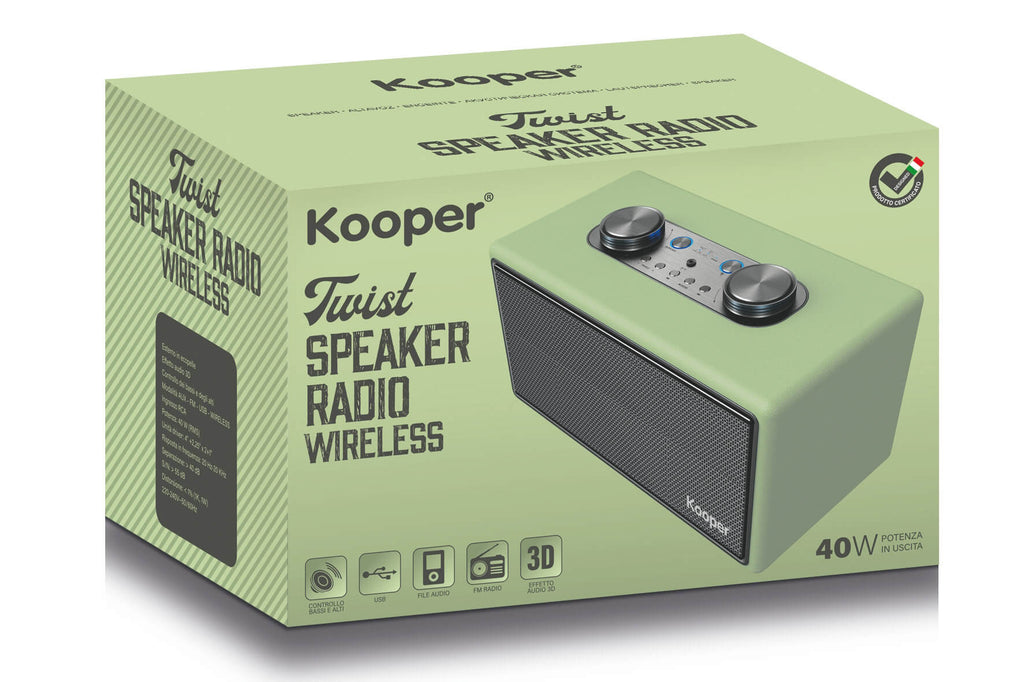 Caratteristiche Tecniche Altoparlante Speaker 40W Wireless con Radio in Similpelle Kooper Twist Verde