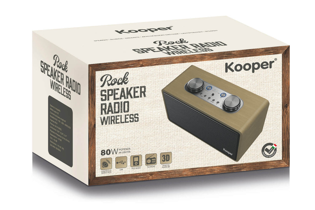 Caratteristiche Tecniche Altoparlante Speaker 80W Wireless con Radio Effetto Legno Kooper Rock Beige
