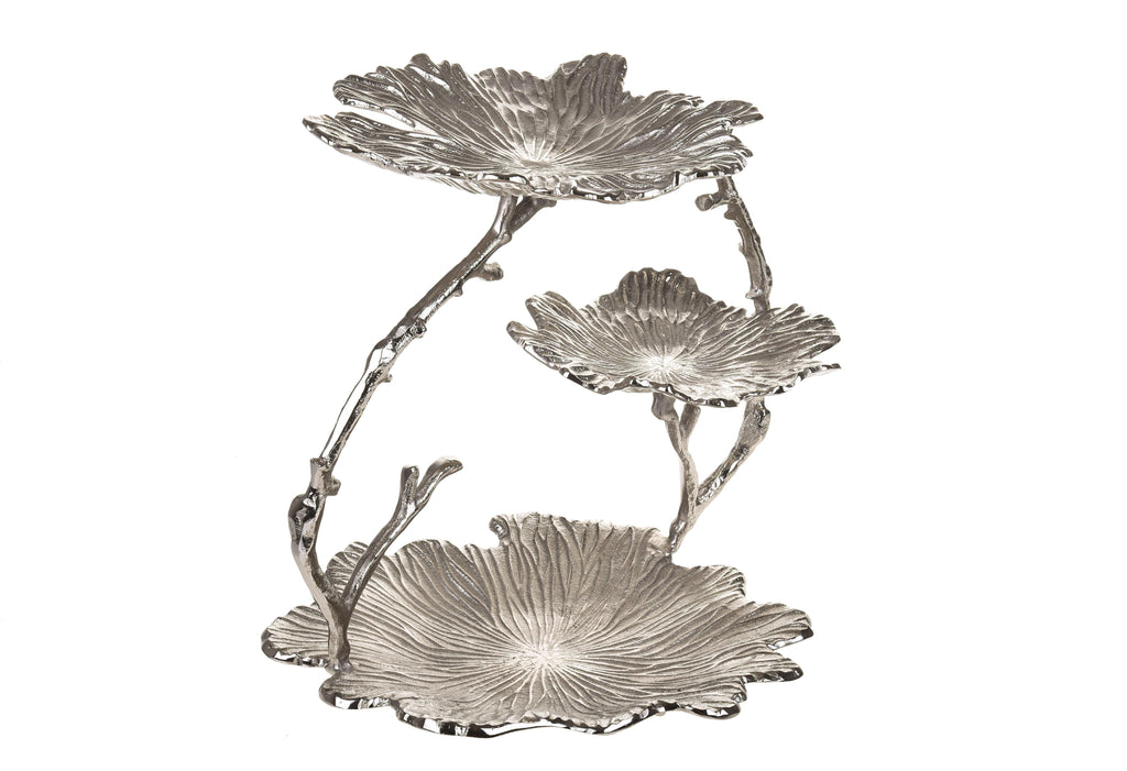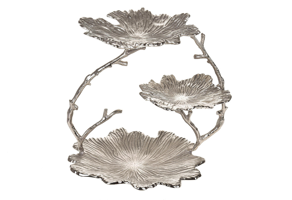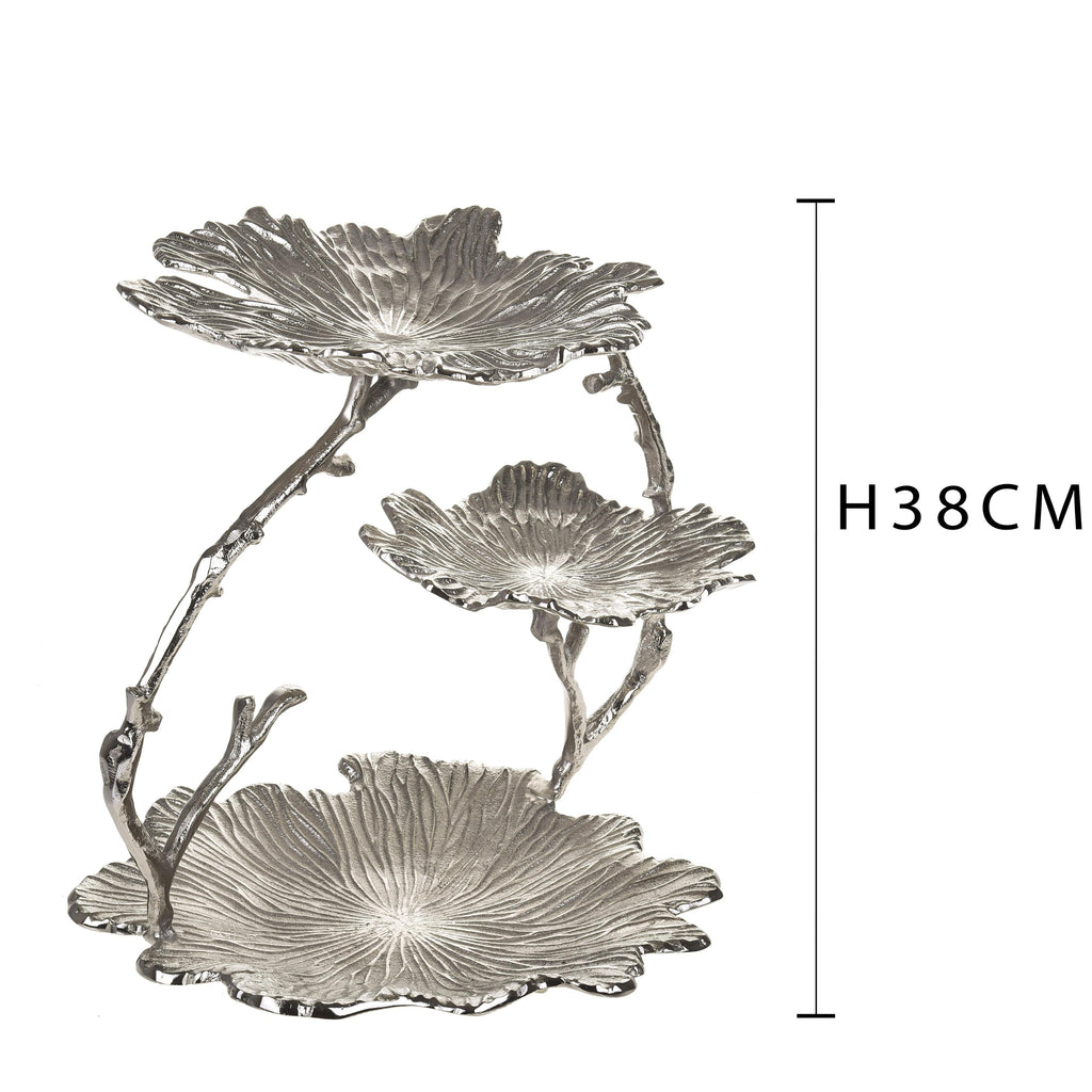 Alzata Con Foglie A 3 Piani. Altezza 38 Cm