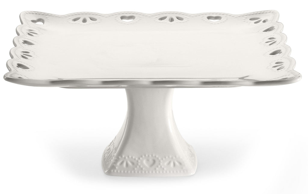 Alzatina con Piatto Quadrato Portatorta 31x31 cm Traforato in Porcellana Kaleidos Juliet Bianco