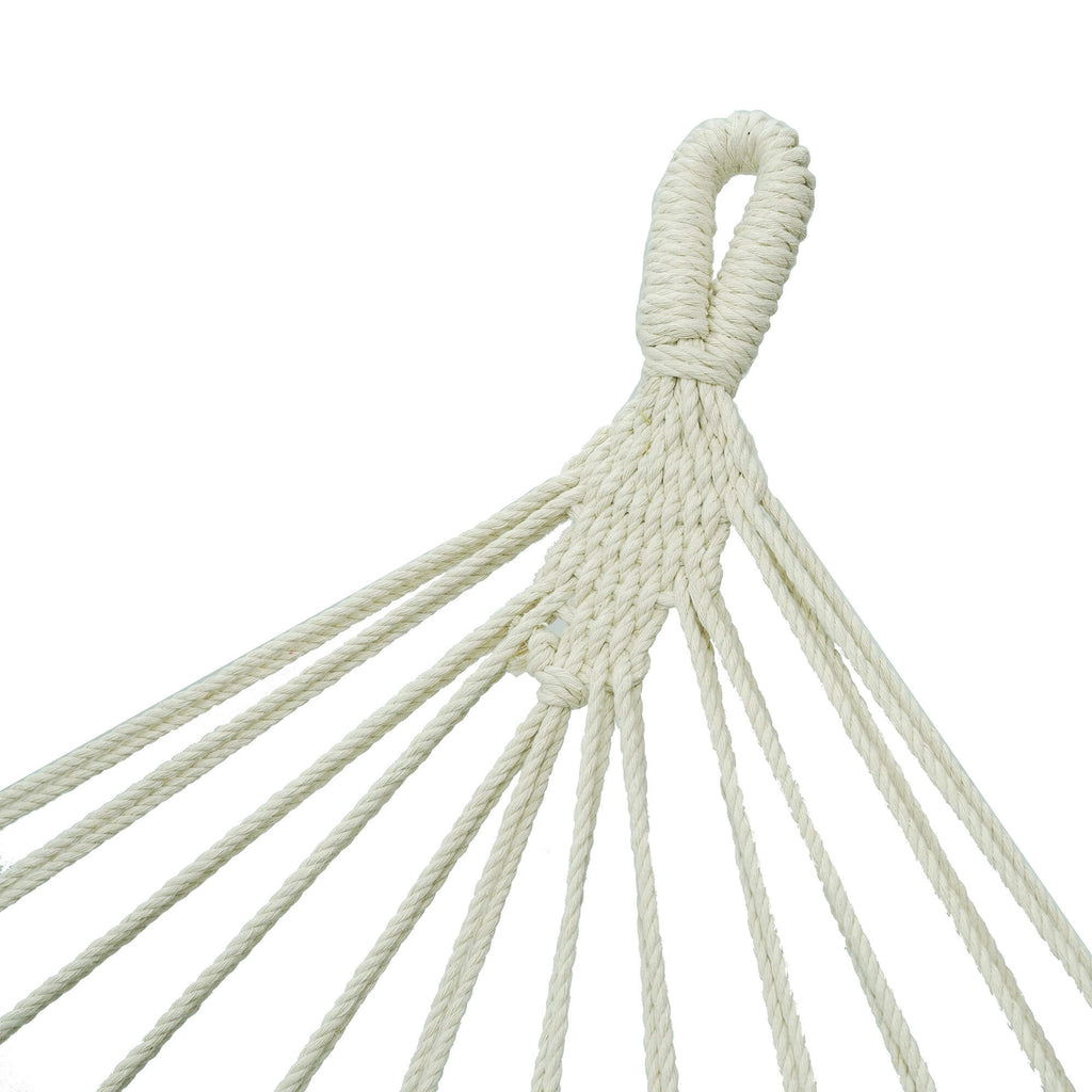 Amaca realizzata in cotone per una maggiore sensazione di comodità e morbidezza perfetta per rilassarsi all'aperto in totale sicurezza dato che può sostenere un peso fino a 150 kg. Il montaggio è estremamente semplice, infatti impiegherete solo pochi minuti prima di potervi godere il vostro meritato relax.