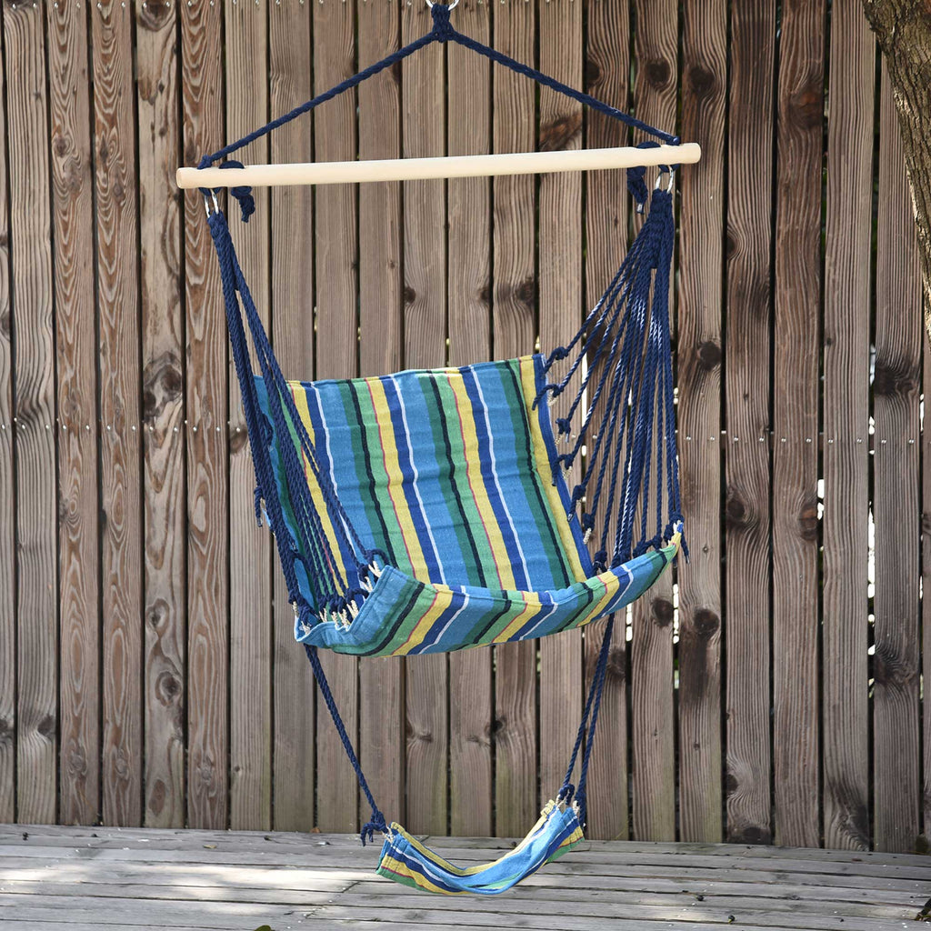 Amaca Sedia Sospesa con Poggiapiedi Struttura in Legno Giallo e Blu