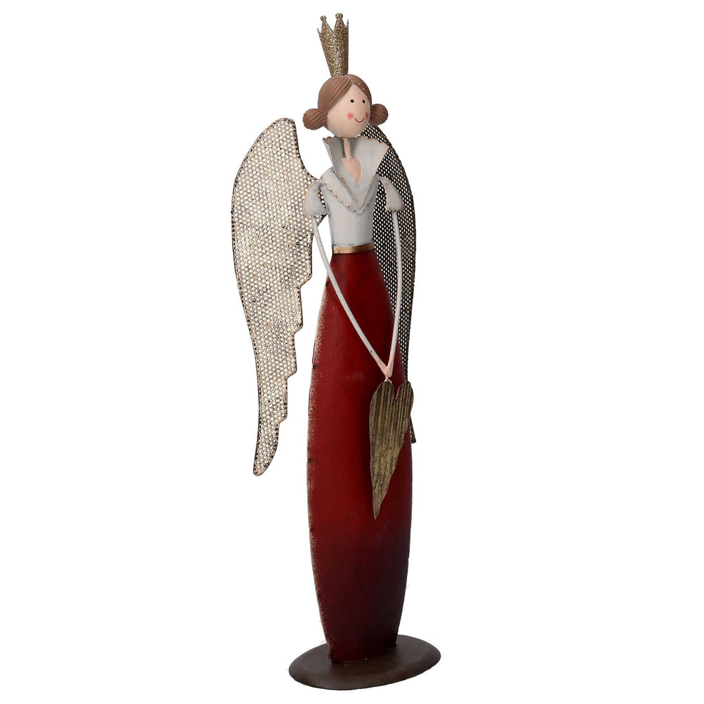Angelo metallo con cuore oro e rosso cm 14,5x8,5xh45