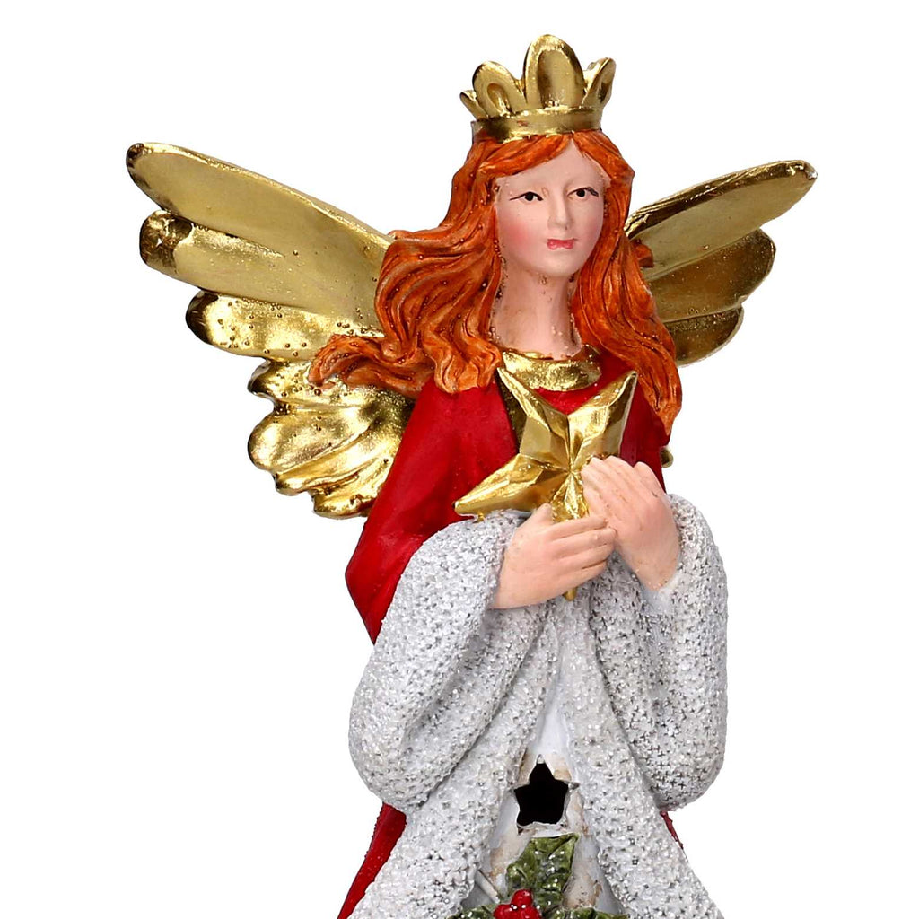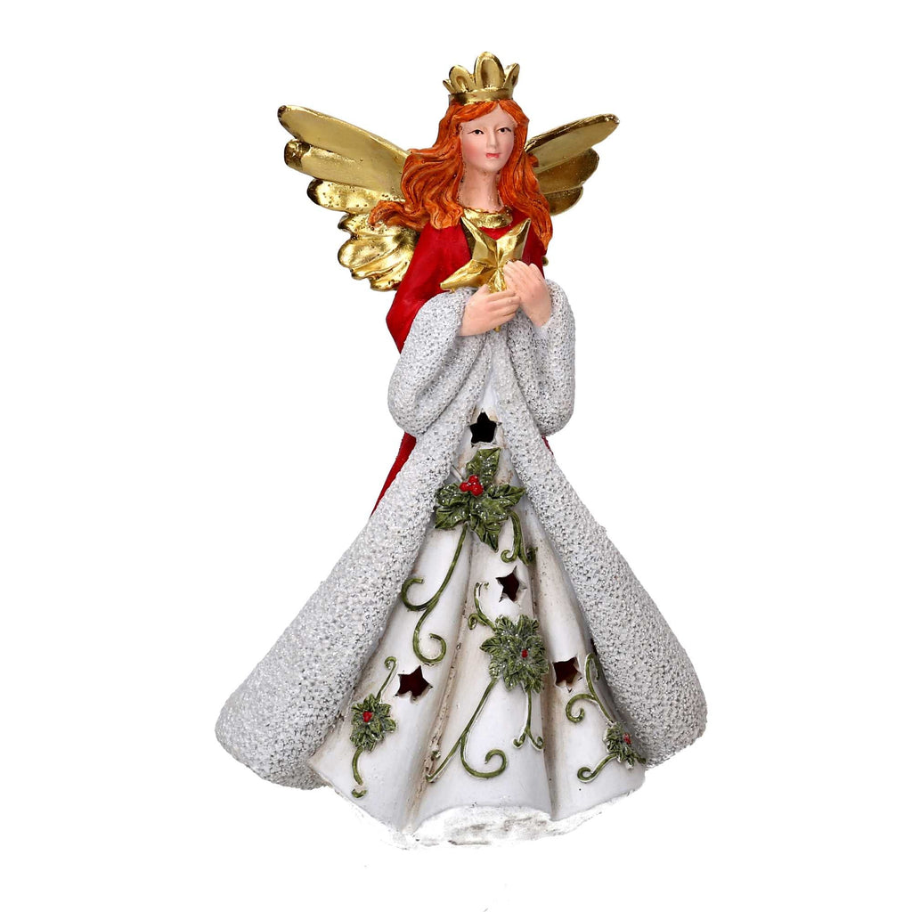 Angelo resina rosso e oro con led cm 18,5x15xh29,5