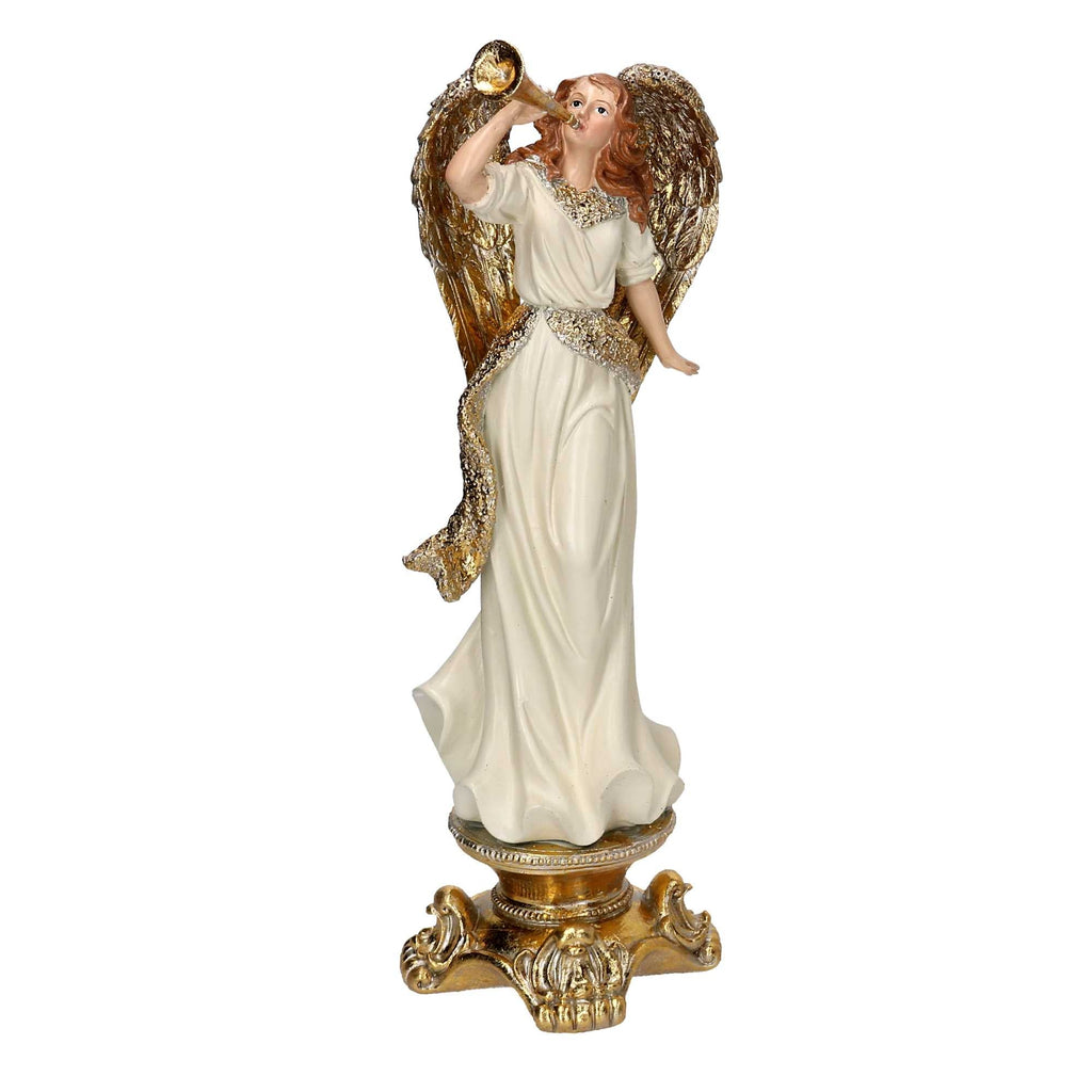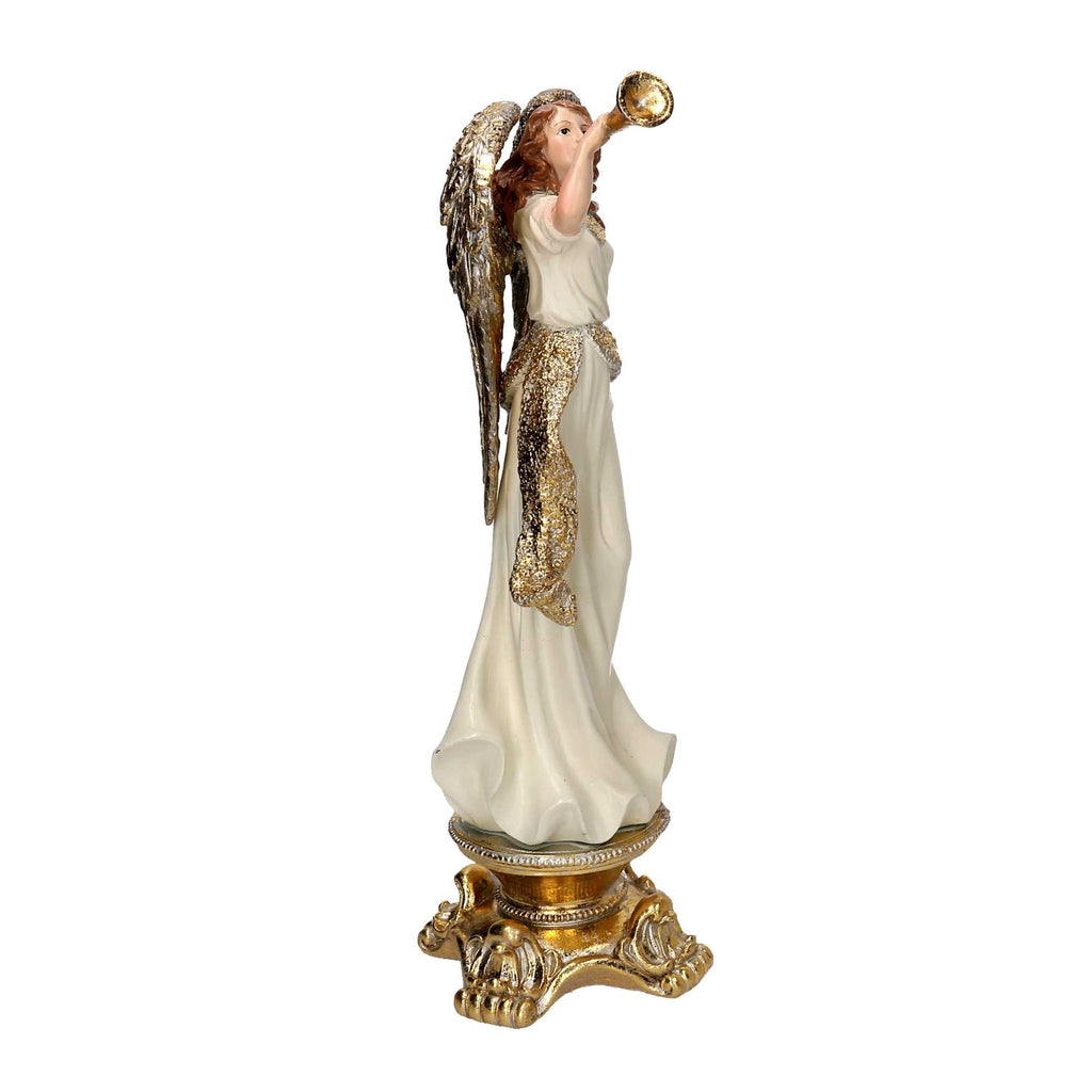Angelo resina su piedistallo crema e oro cm 12,5x11xh36
