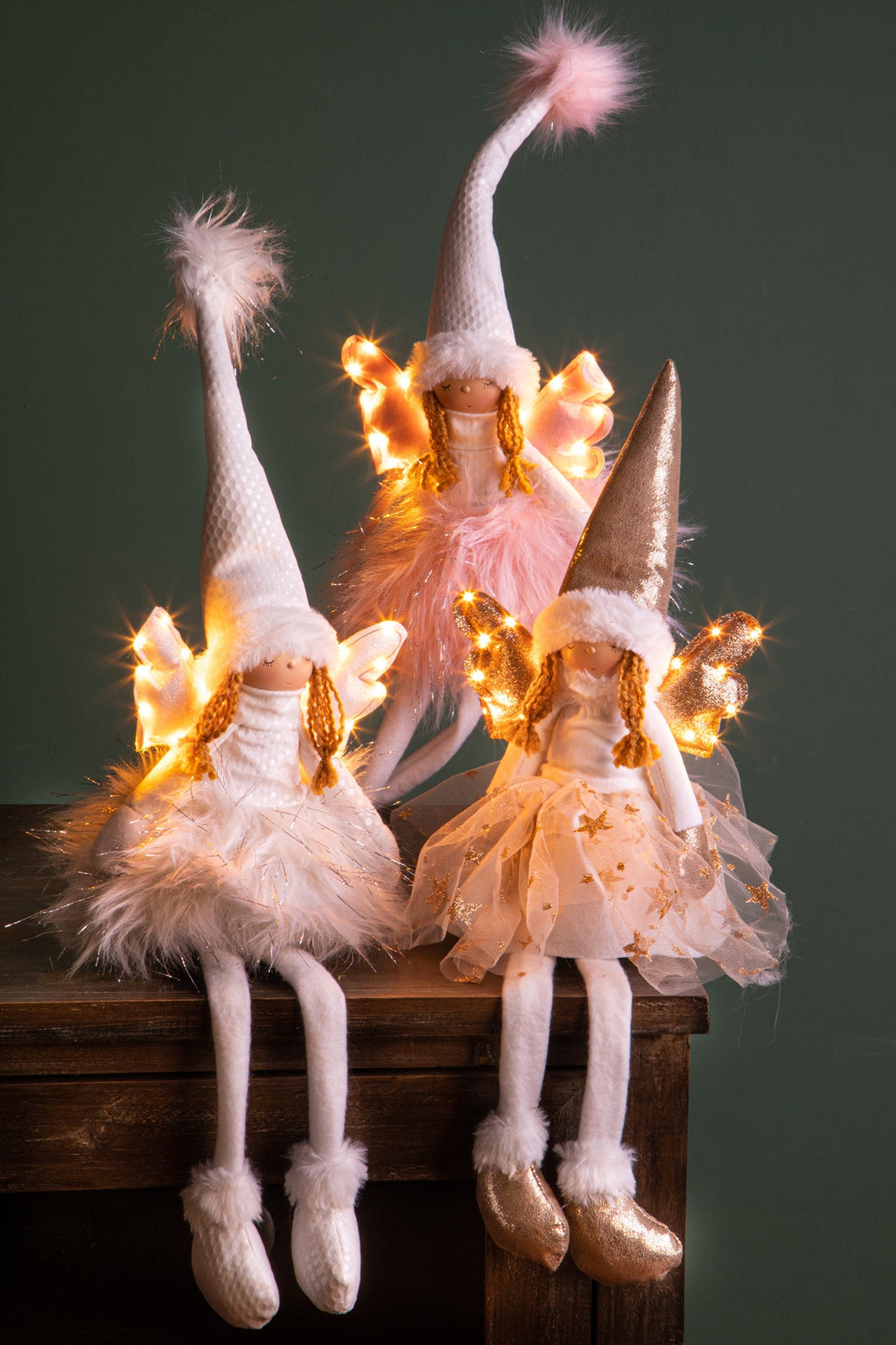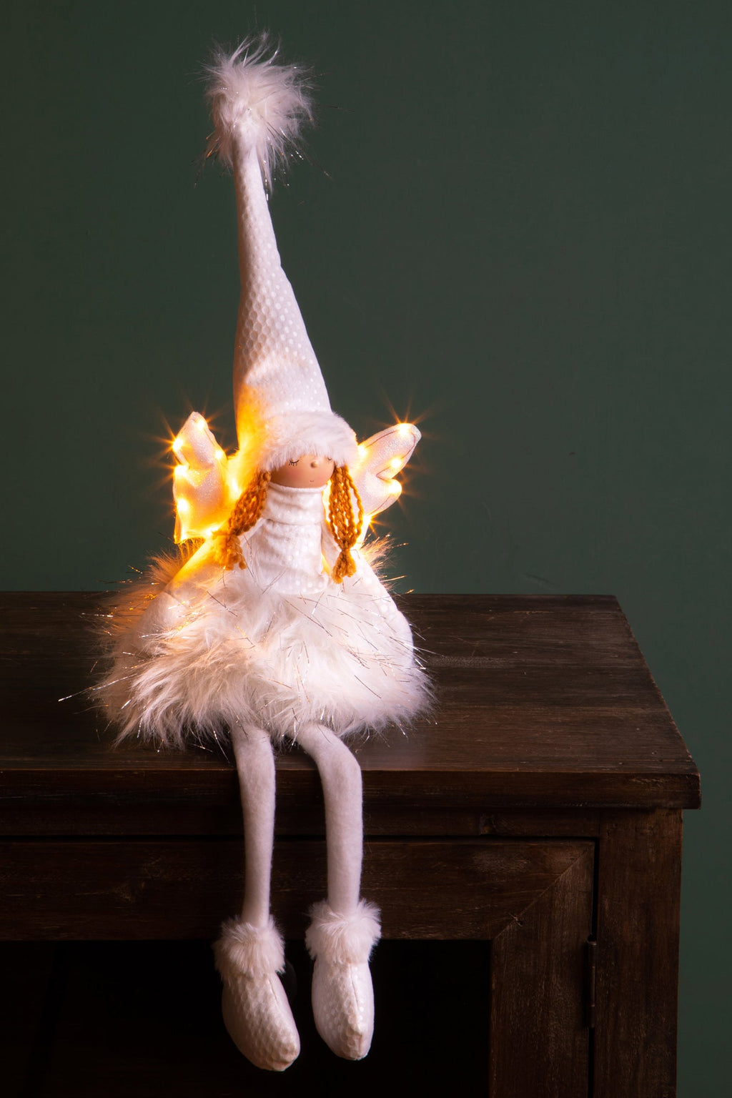 Angelo Seduto con Led H60 cm in Tessuto Bianco