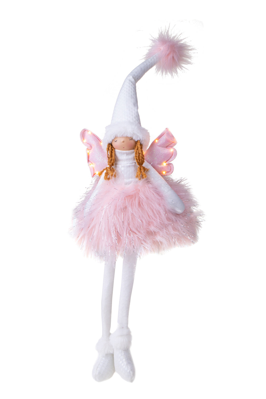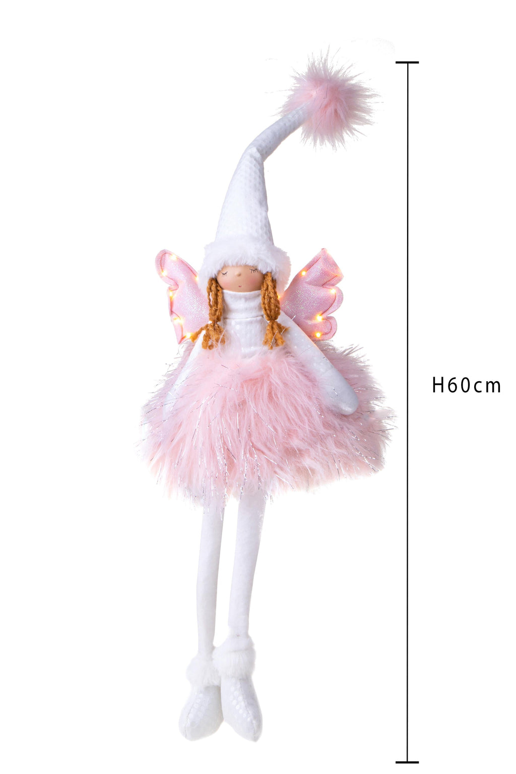 Angelo Seduto con Led H60 cm in Tessuto Rosa