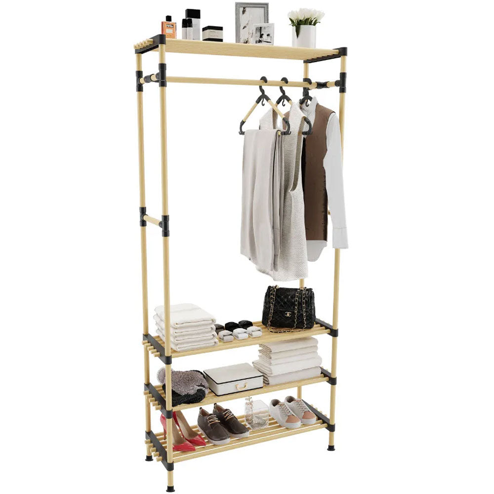 La parte superiore funziona da appendiabiti ed è fornita di una barra dove è possibile appendere grucce, abiti e accessori come cappotti, camicie cappelli, ombrelli e tutto ciò che si vuole.