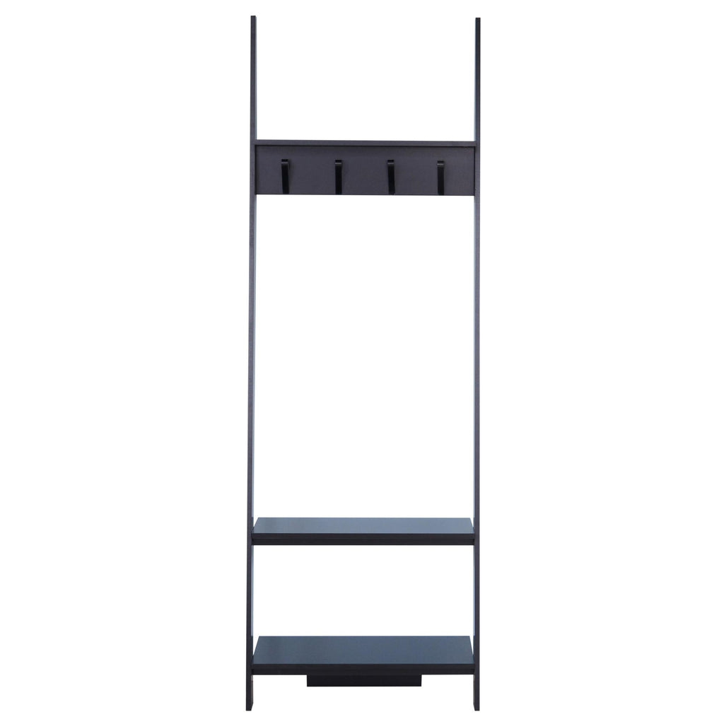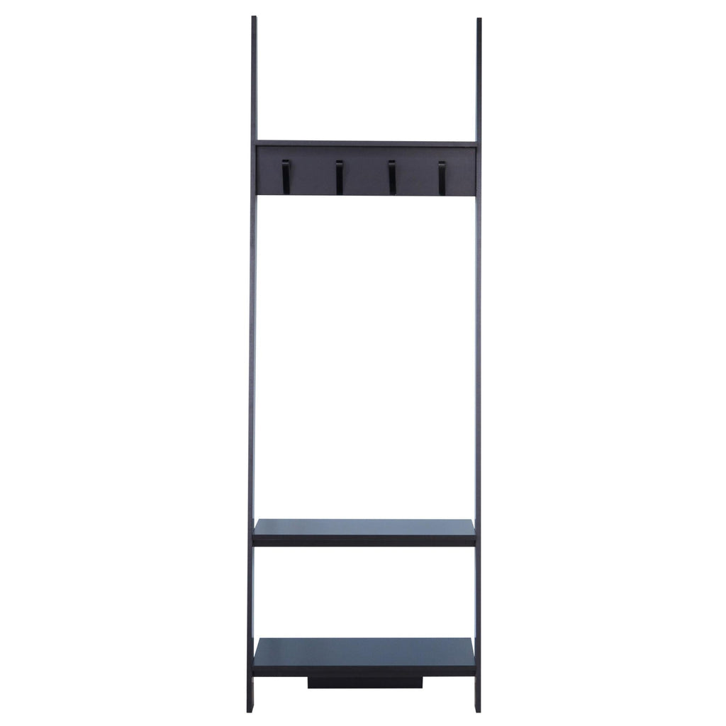 Appendiabiti da Ingresso a 3 Ripiani 4 Ganci in Legno Nero 67x38.5x196 cm
