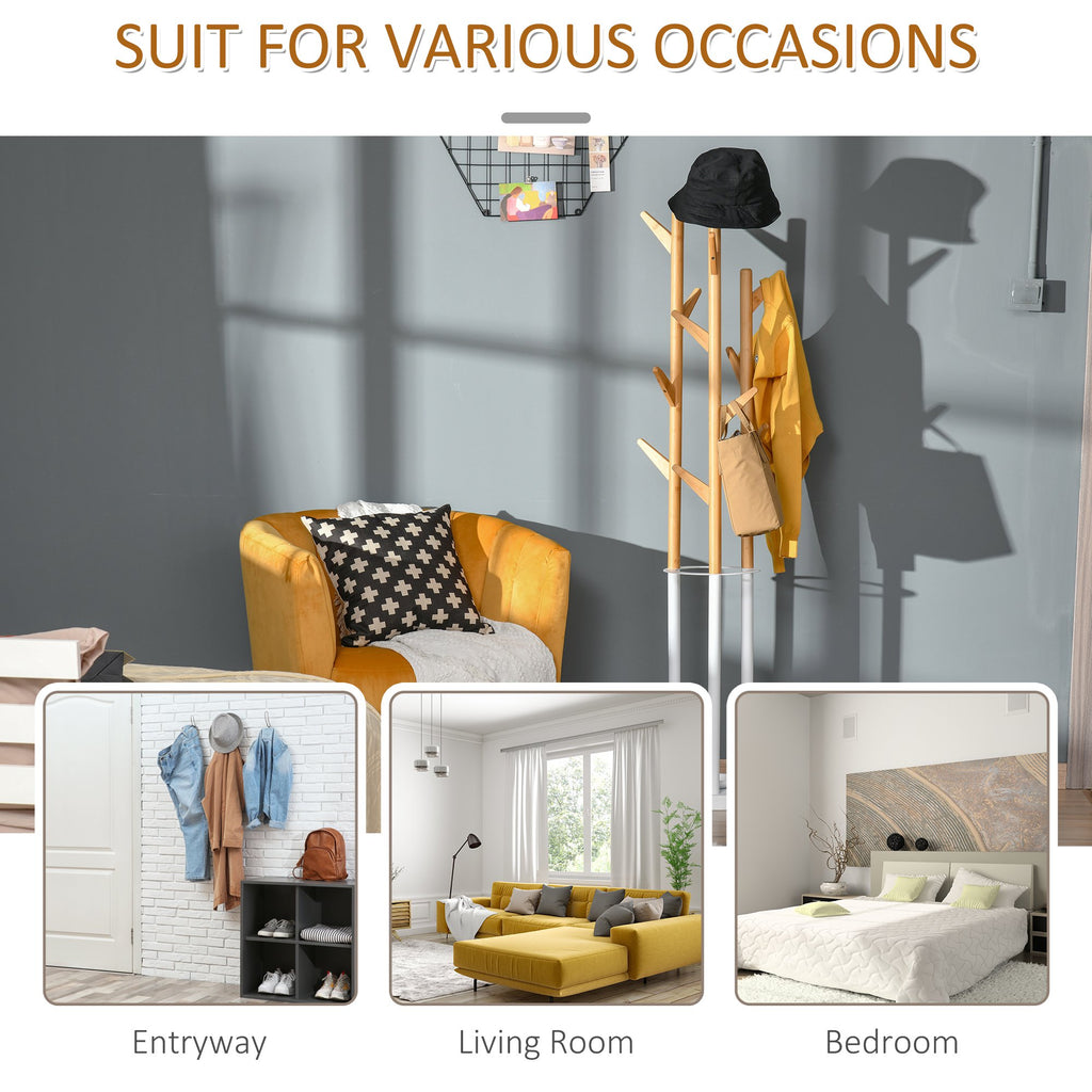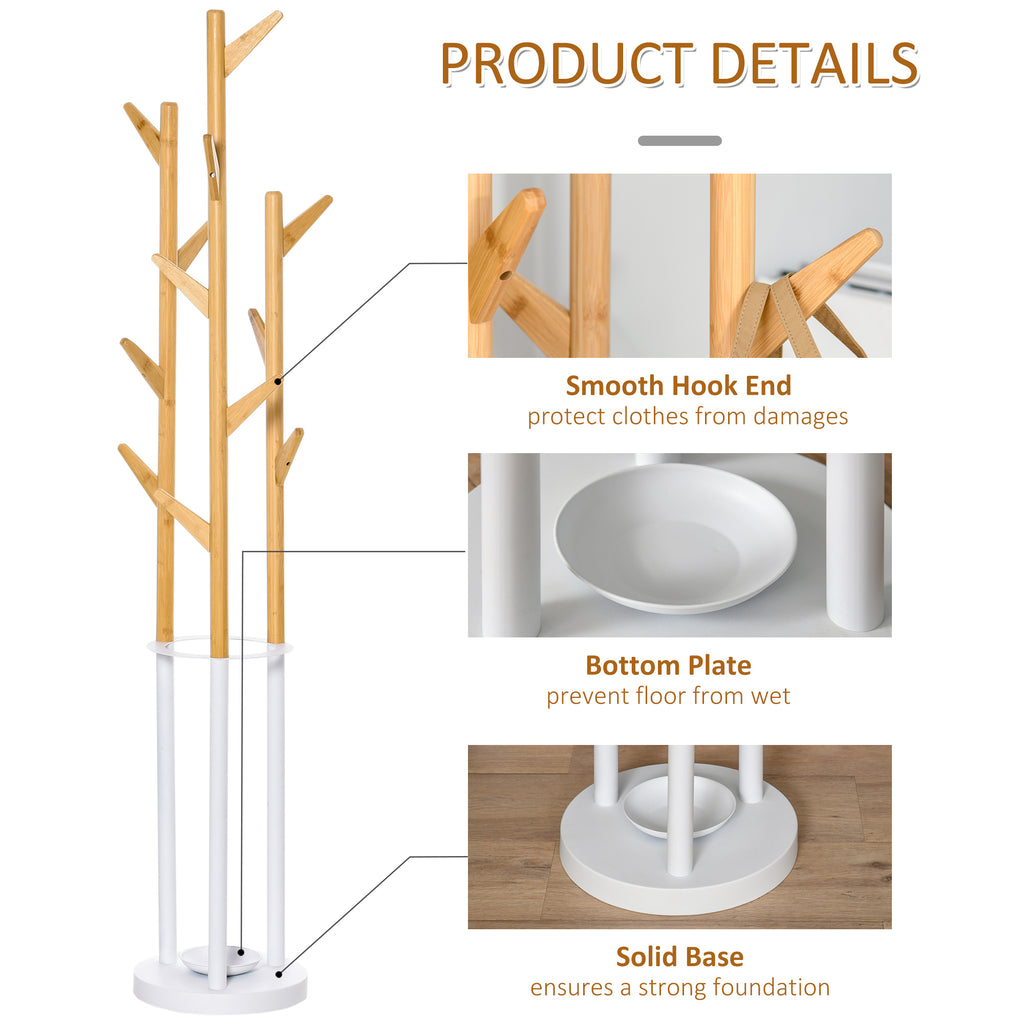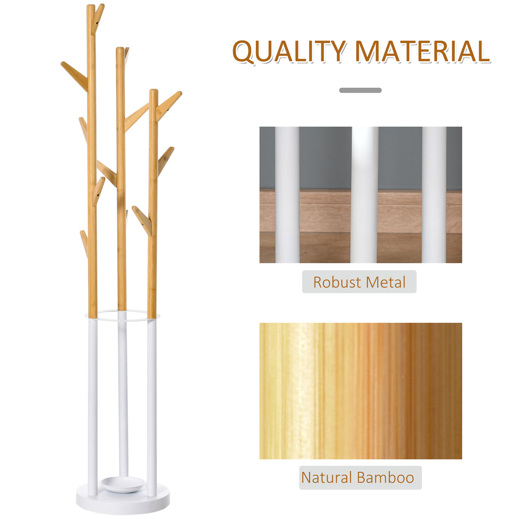 Appendiabiti da Terra 30,5x30,5x174,5 cm in Metallo e Bambù Legno e Bianco