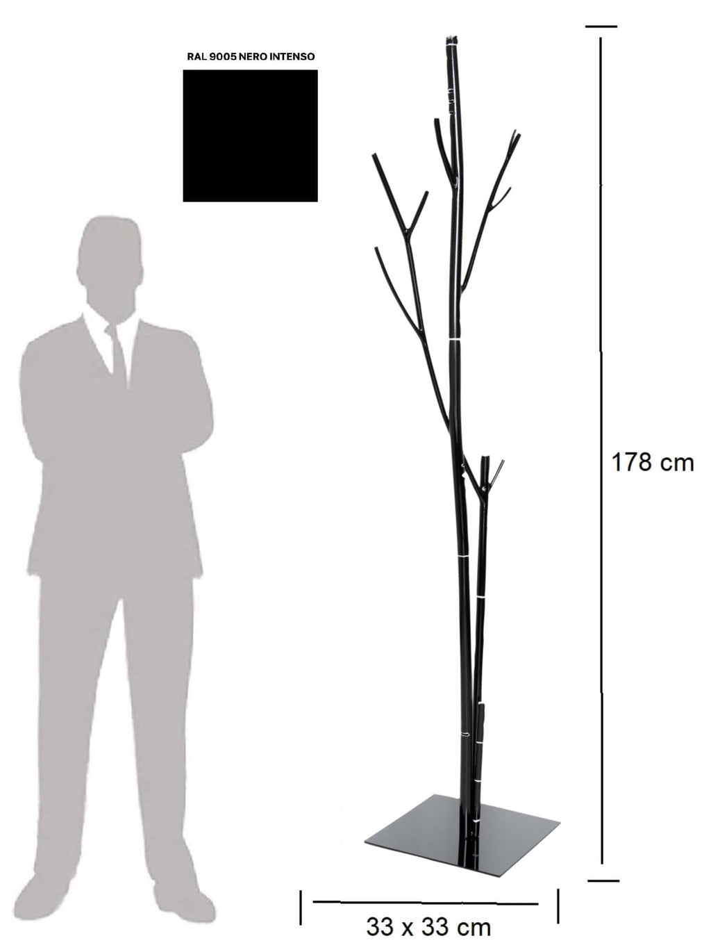 Appendiabiti da Terra 33x33x178 cm in Ferro Battuto Vasconi Bamboo Nero