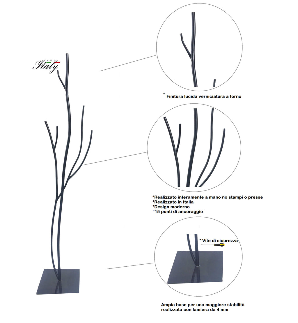 Appendiabiti da terra in ferro battuto modello Castagno realizzato in Italia.