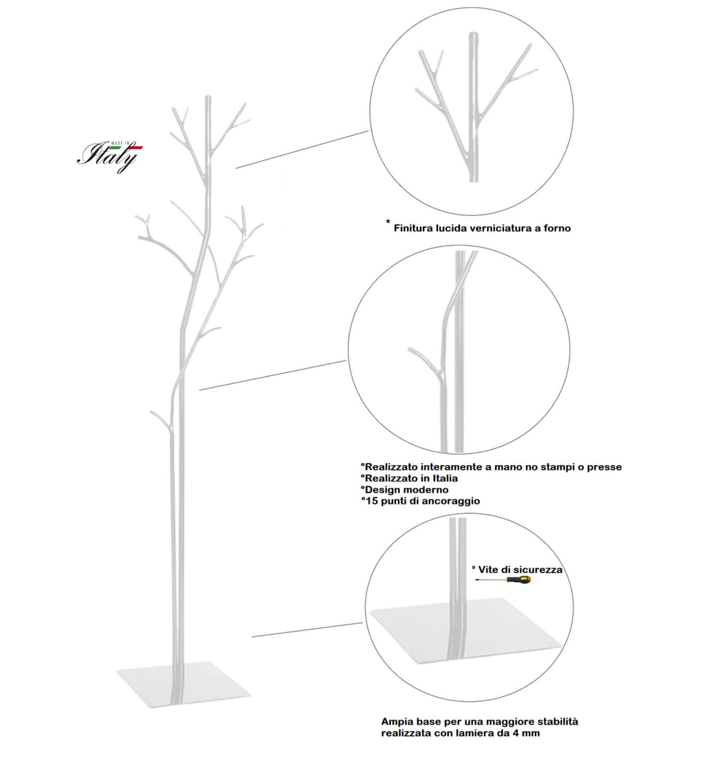 Appendiabiti da terra in ferro battuto modello Platano realizzato in Italia.