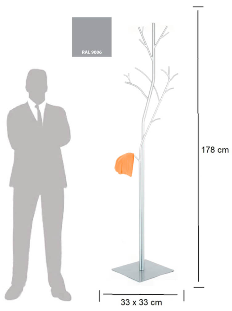 Appendiabiti da Terra 33x33x178 cm in Ferro Battuto Vasconi Platano Argento