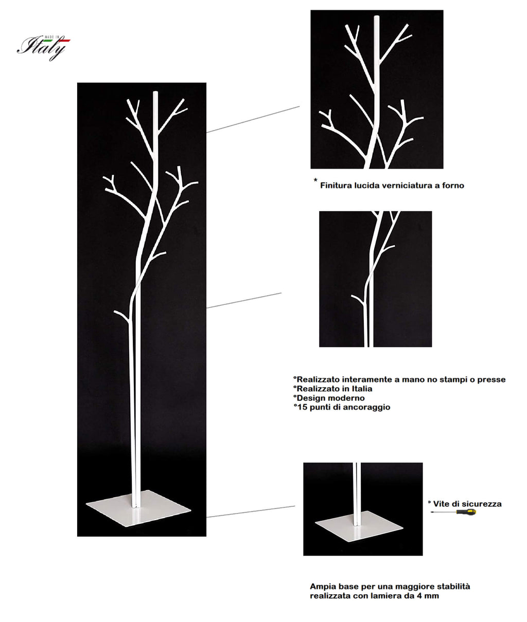 Appendiabiti da Terra 33x33x178 cm in Ferro Battuto Vasconi Platano Bianco